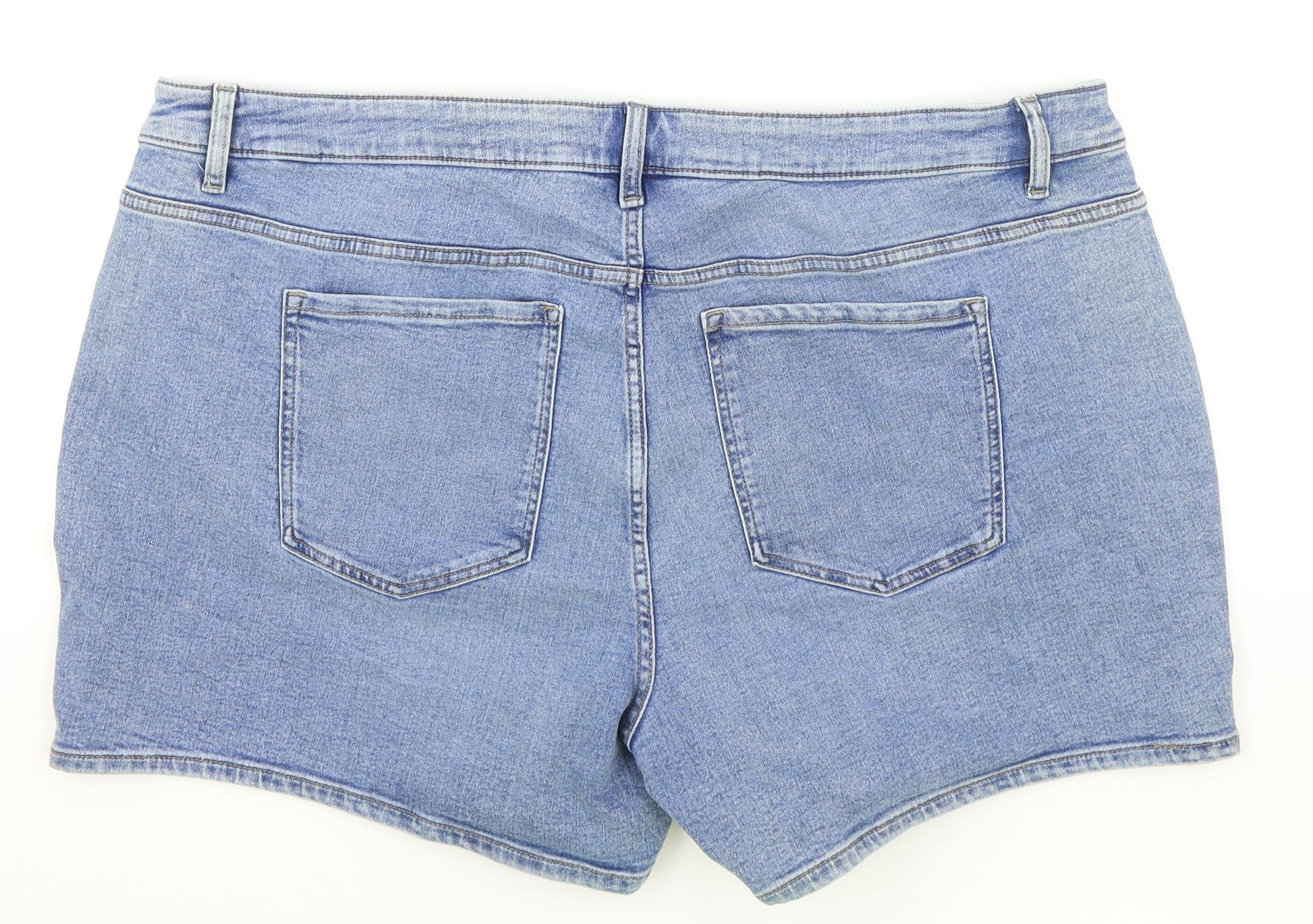 Marks and Spencer Womens Blue Cotton Mom Shorts Size 24 L5 in Regular Zip