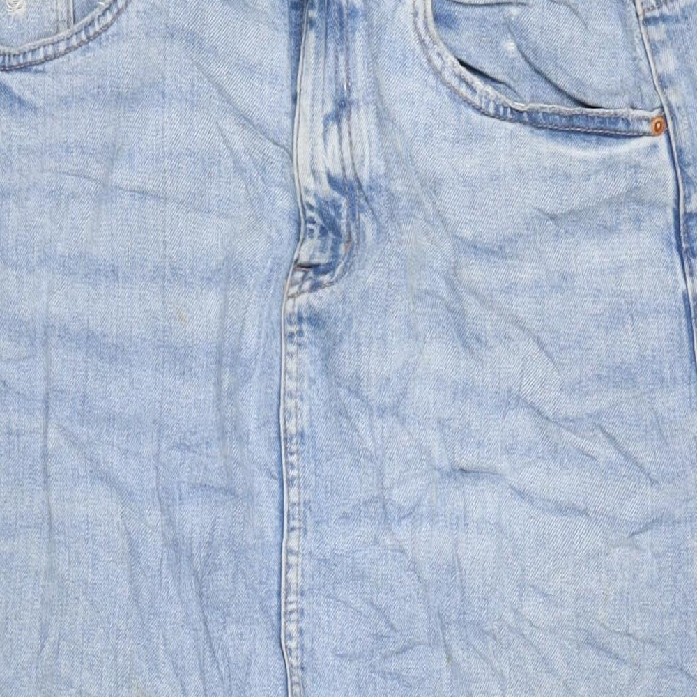 Marks and Spencer Womens Blue Cotton Straight & Pencil Skirt Size 12 Zip