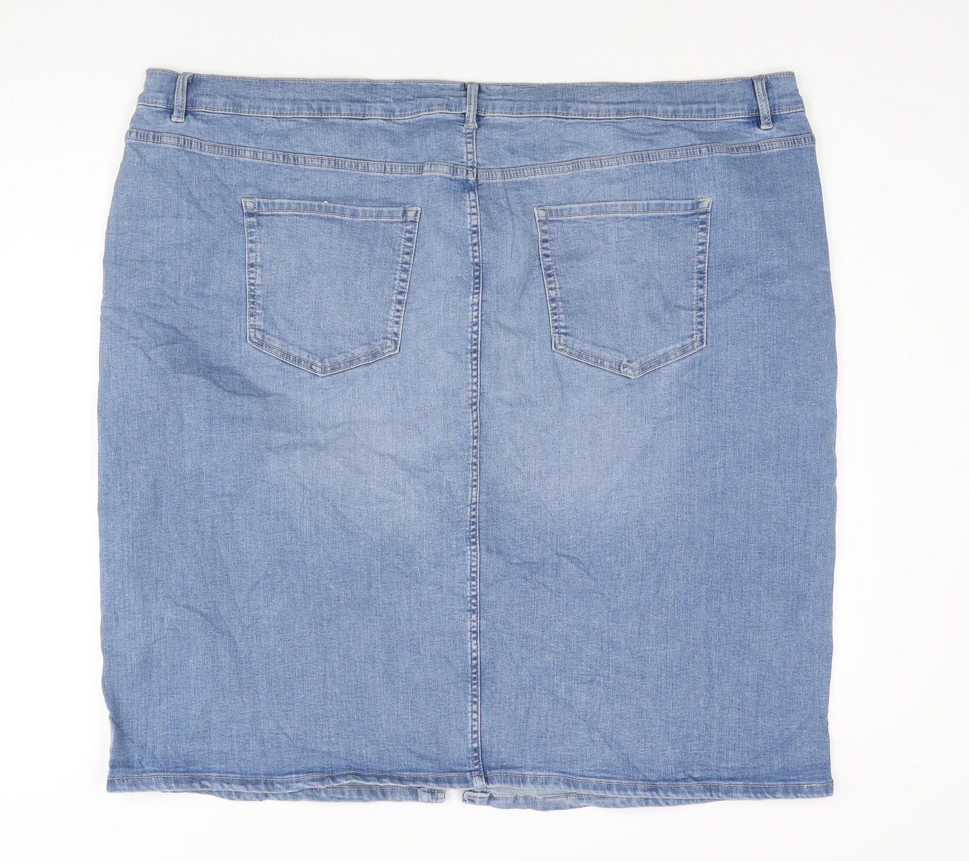 Marks and Spencer Womens Blue Cotton Straight & Pencil Skirt Size 28 Zip