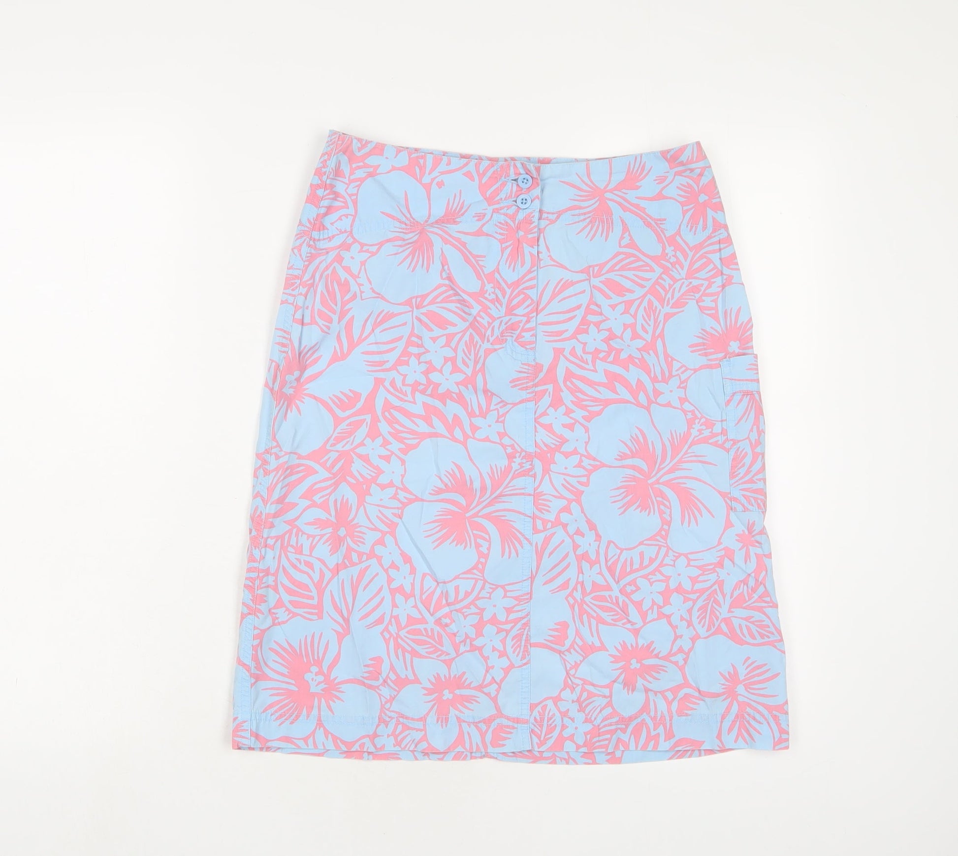 Marks and Spencer Womens Blue Fair Isle Cotton A-Line Skirt Size 10 Zip