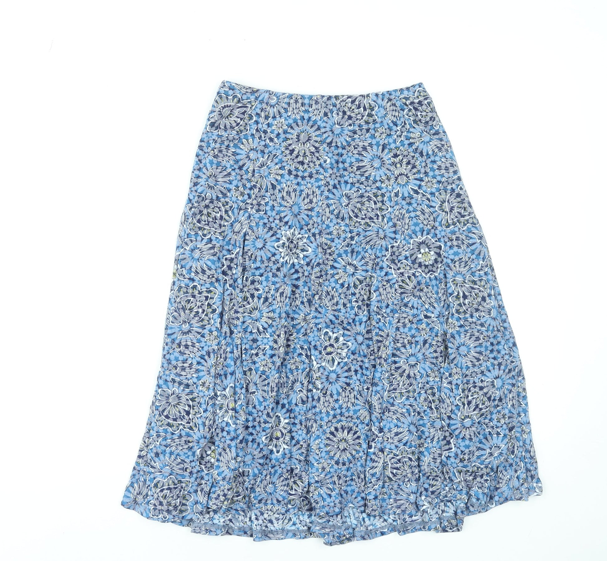 Marks and Spencer Women's Blue Floral A-Line Midi Skirt Size 10