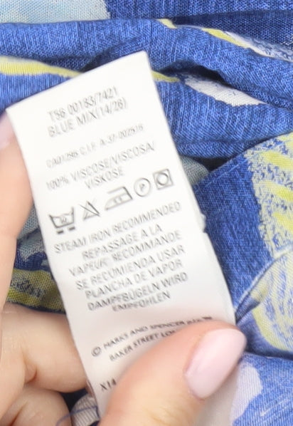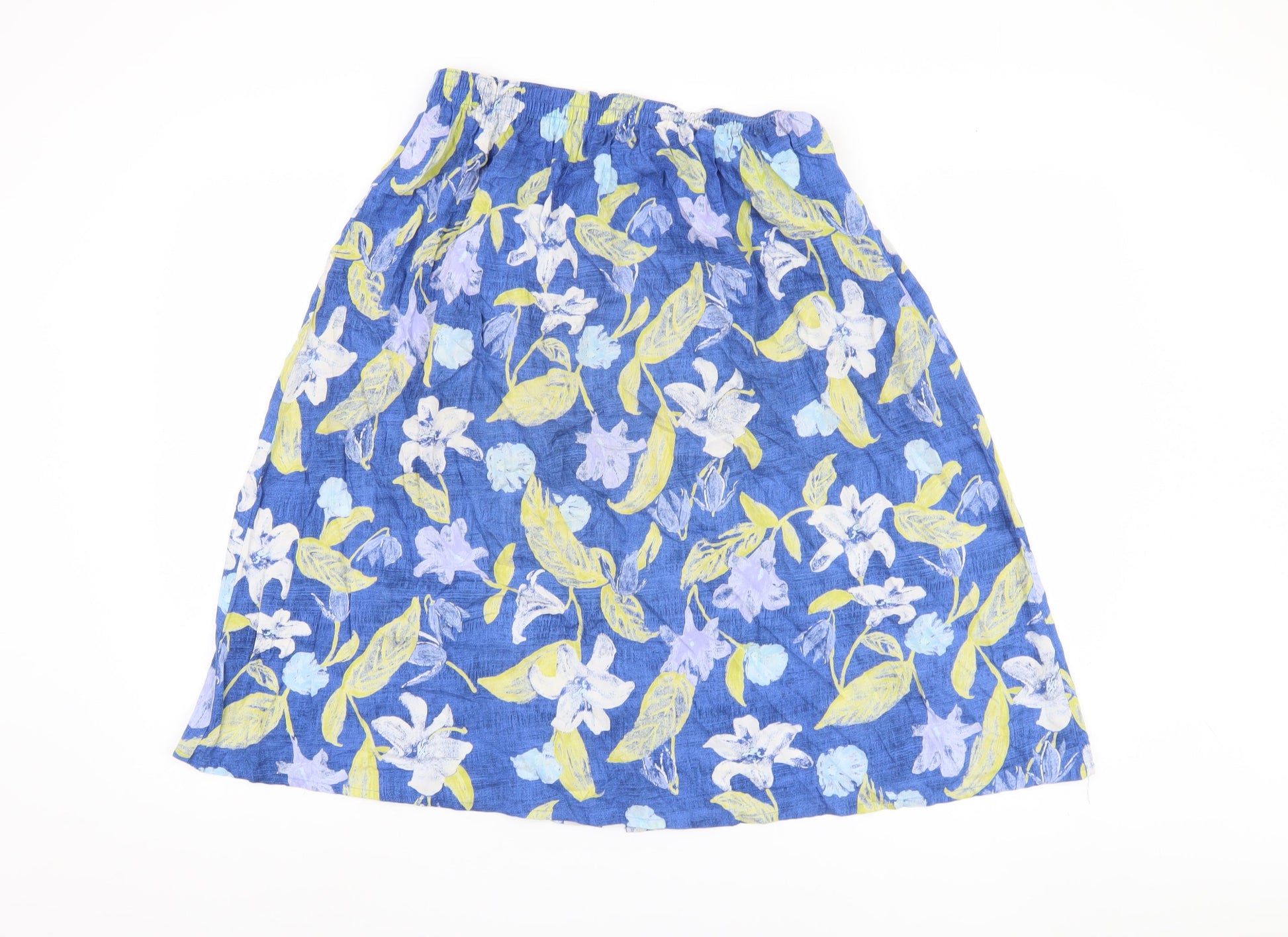 Marks and Spencer Women's Blue Floral A-Line Skirt, Size 14