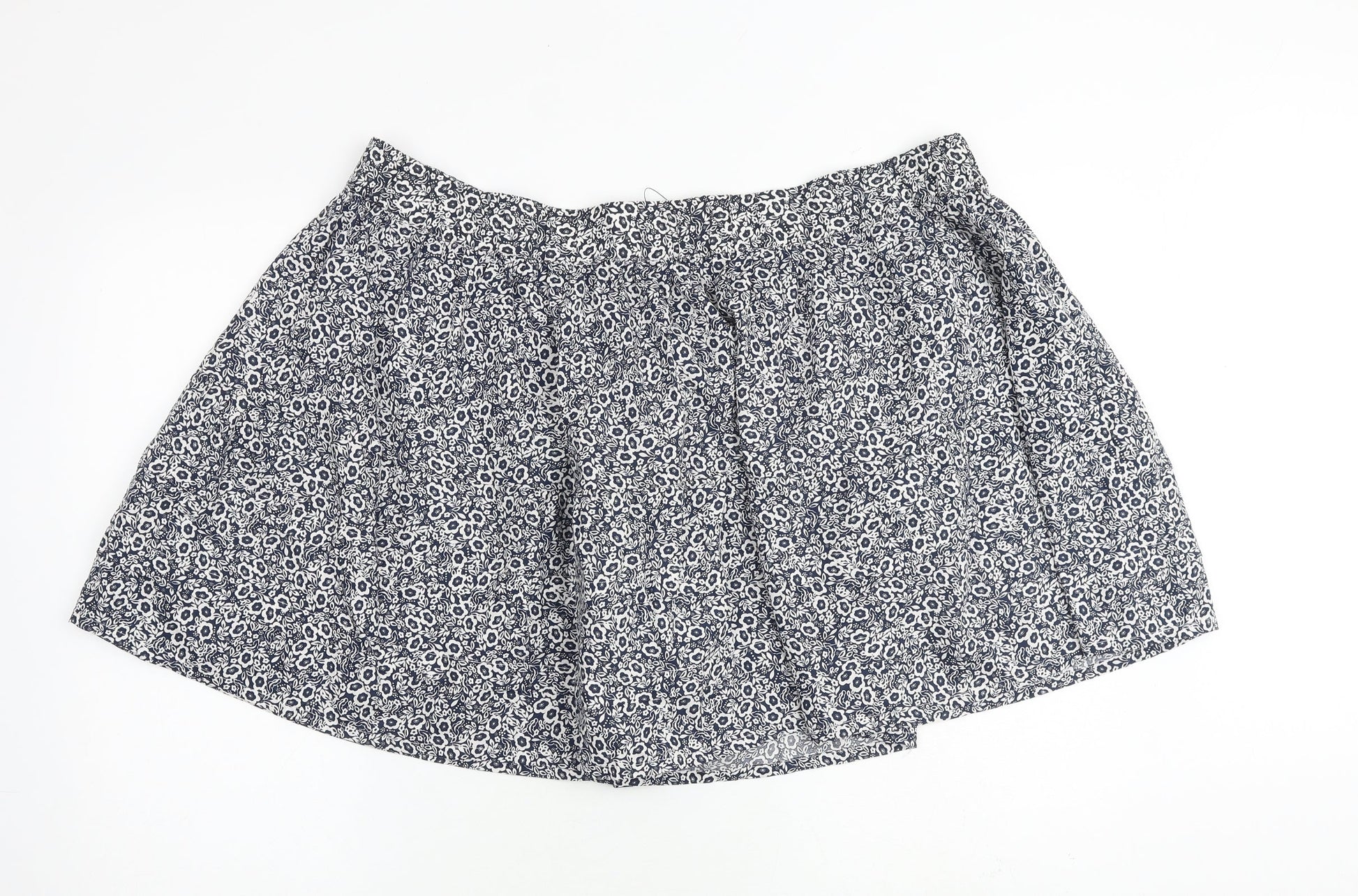 Marks and Spencer Womens Blue Floral Cotton A-Line Skirt Size 22