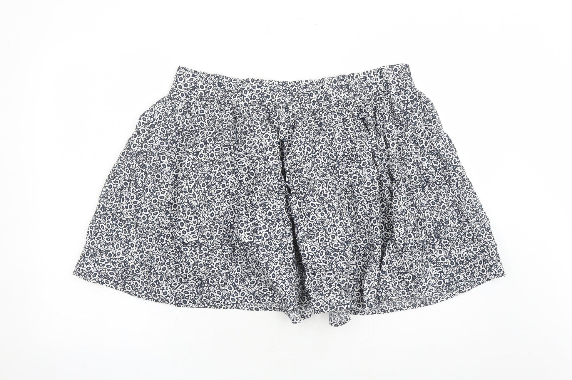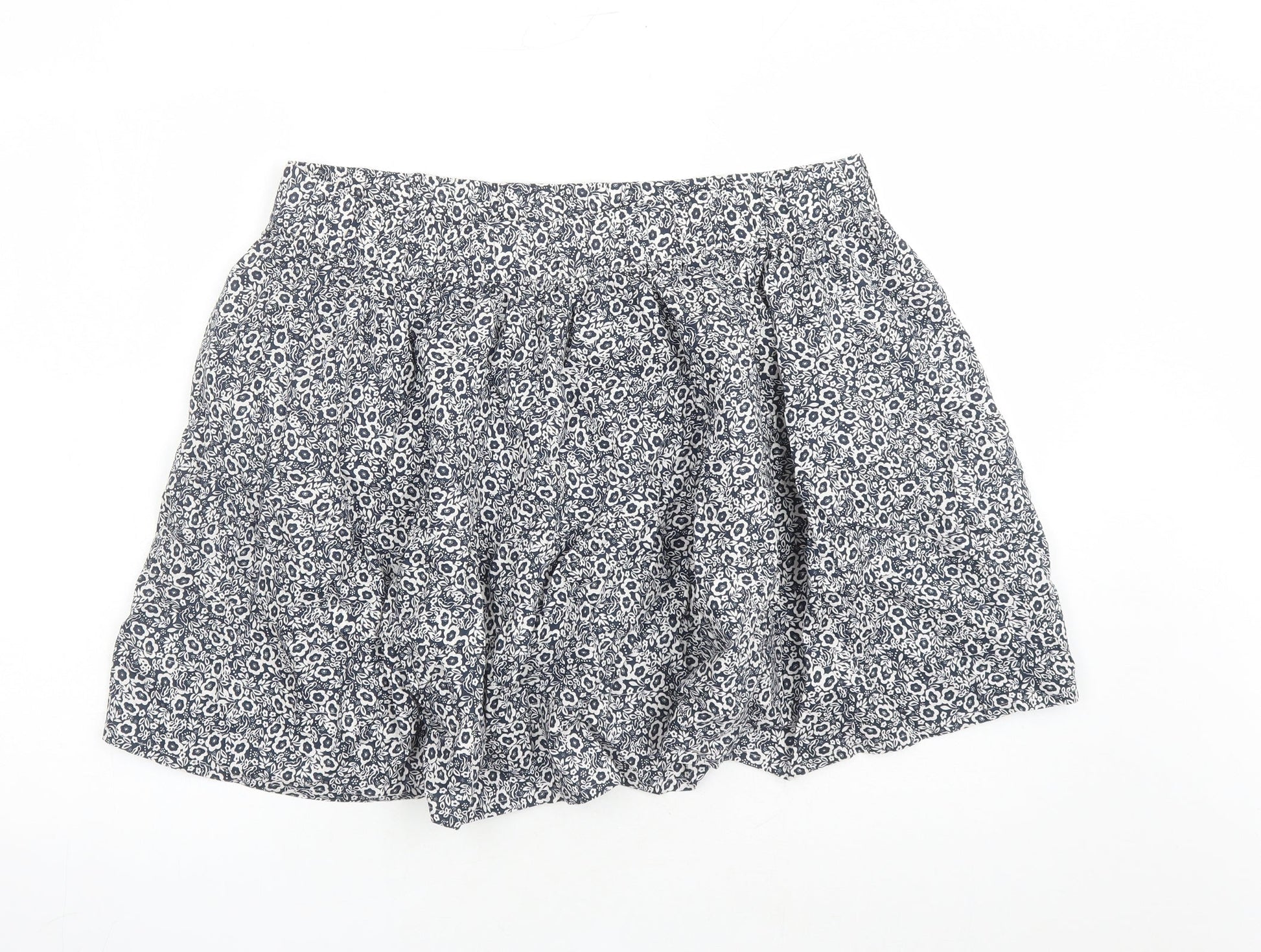Marks and Spencer Womens Blue Floral Cotton Swing Skirt Size 18 - Elasticated Waist