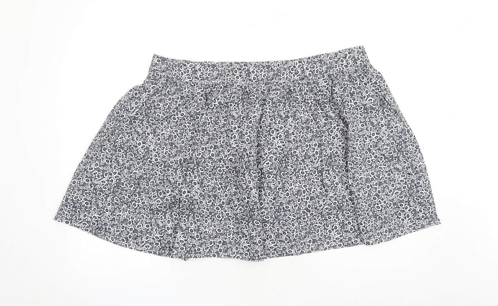 Marks and Spencer Womens Blue Floral Cotton Swing Skirt Size 22 - Elasticated Waist