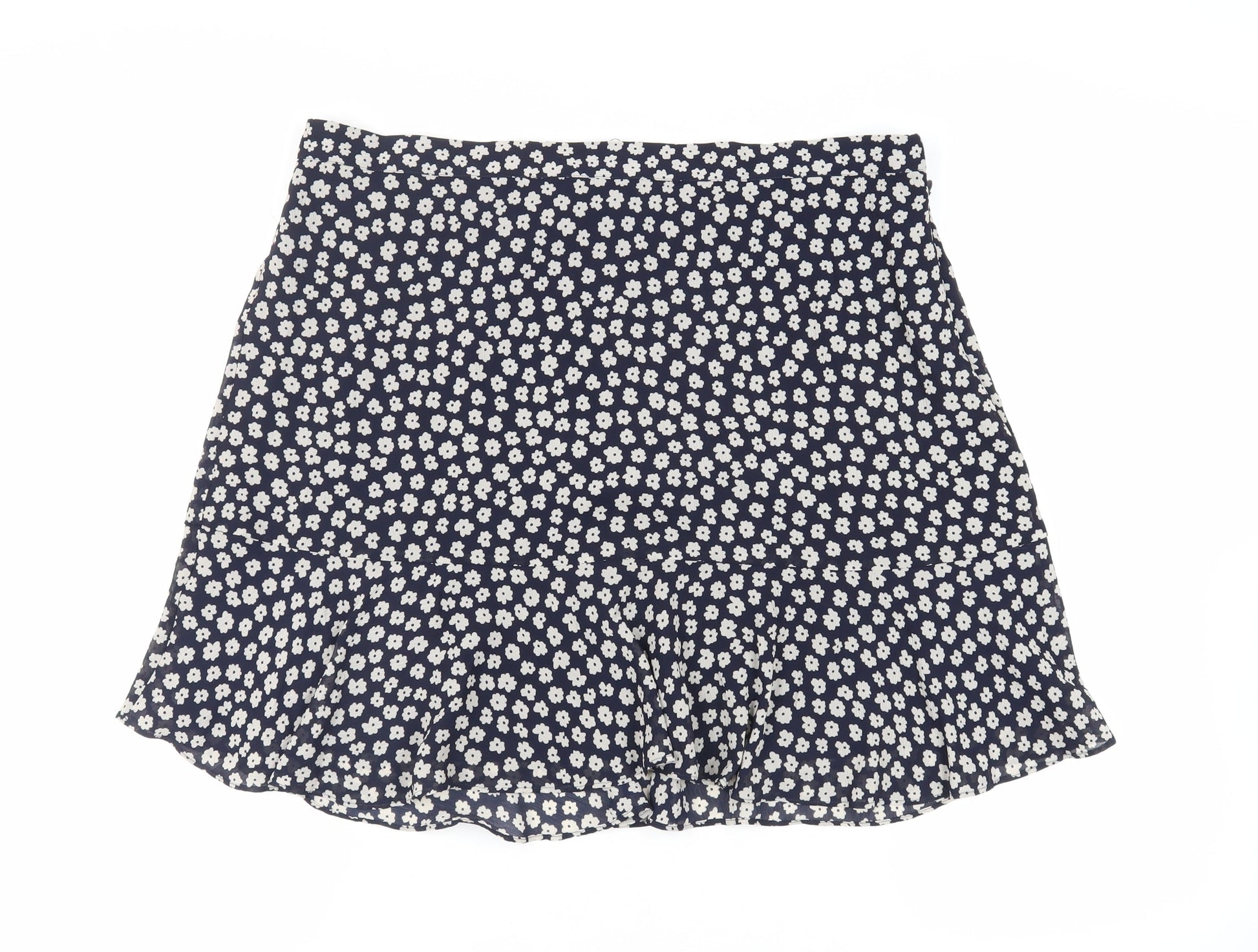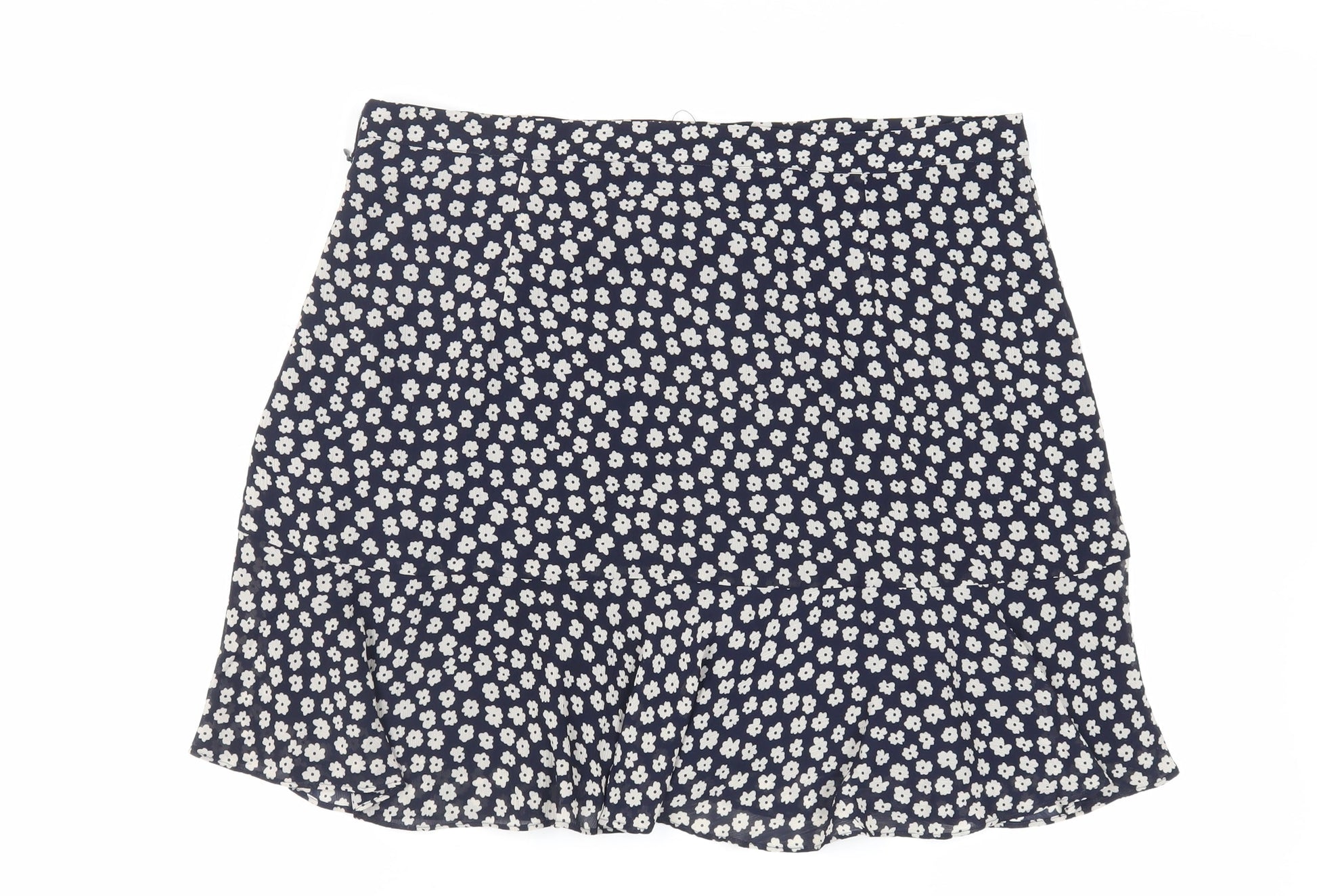 Marks and Spencer Womens Blue Floral Polyester Flare Skirt Size 18 Zip