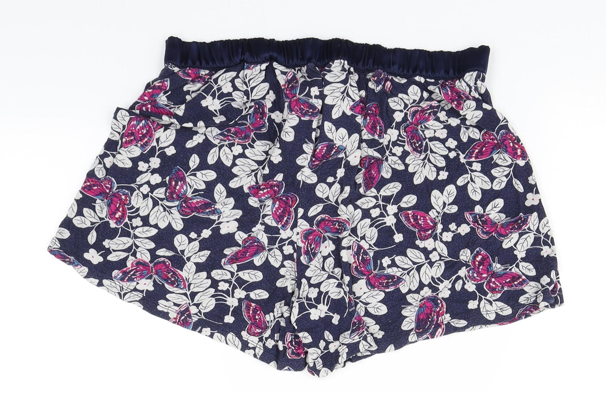 Marks and Spencer Womens Blue Floral Polyester Hot Pants Shorts Size 10 Regular