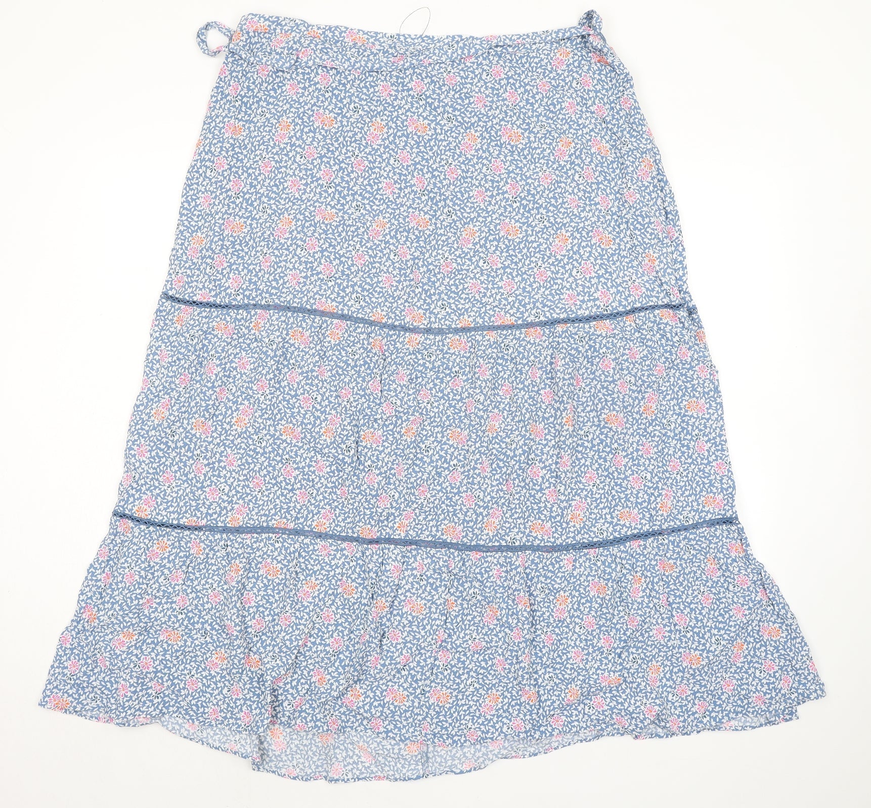Marks and Spencer Womens Blue Floral Viscose A-Line Skirt Size 20 Zip - Belted