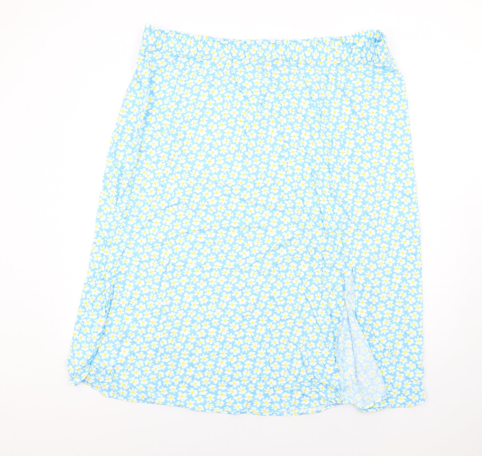 Marks and Spencer Womens Blue Floral Viscose A-Line Skirt Size 24