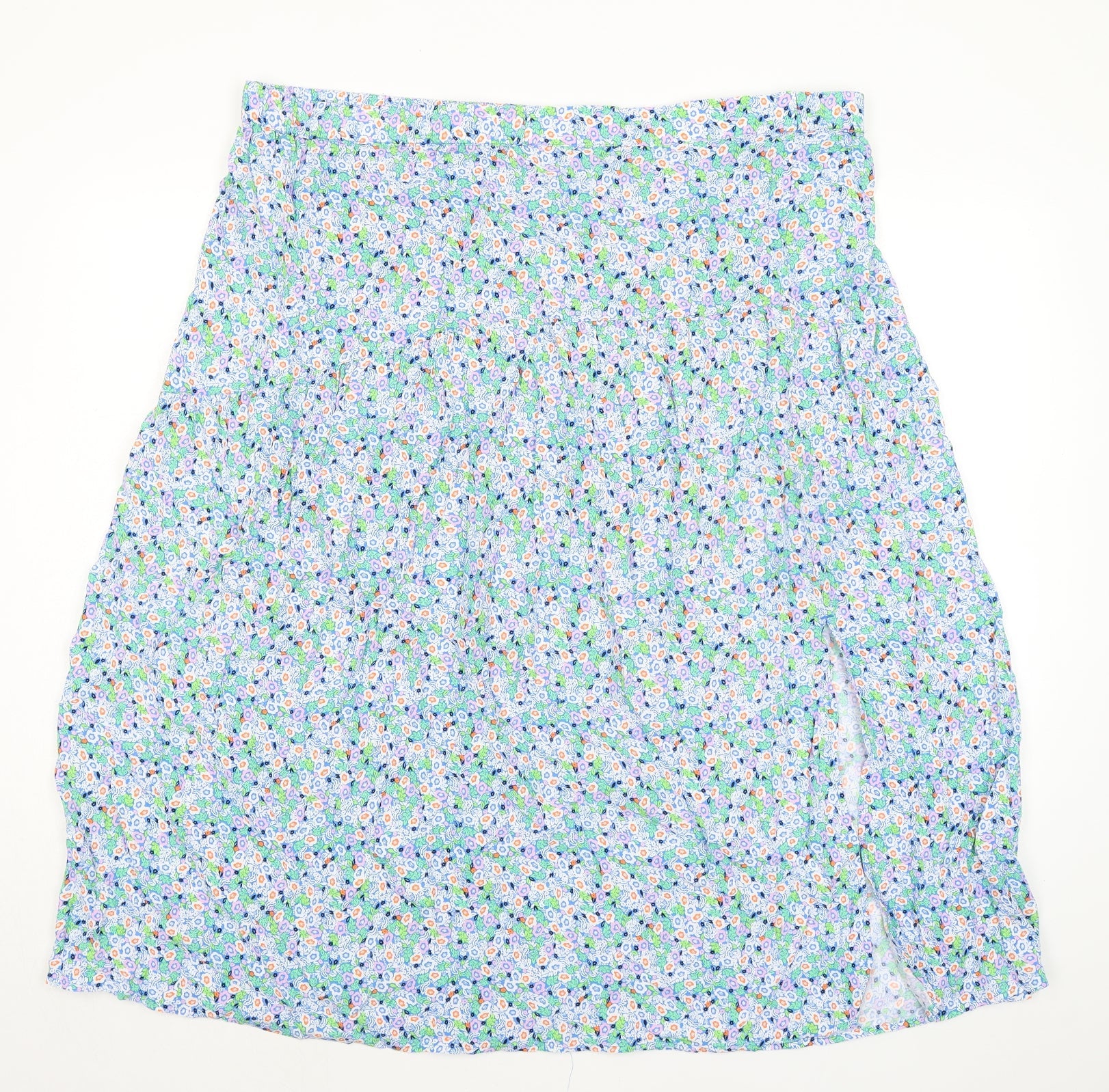 Marks and Spencer Womens Blue Floral Viscose A-Line Skirt Size 24