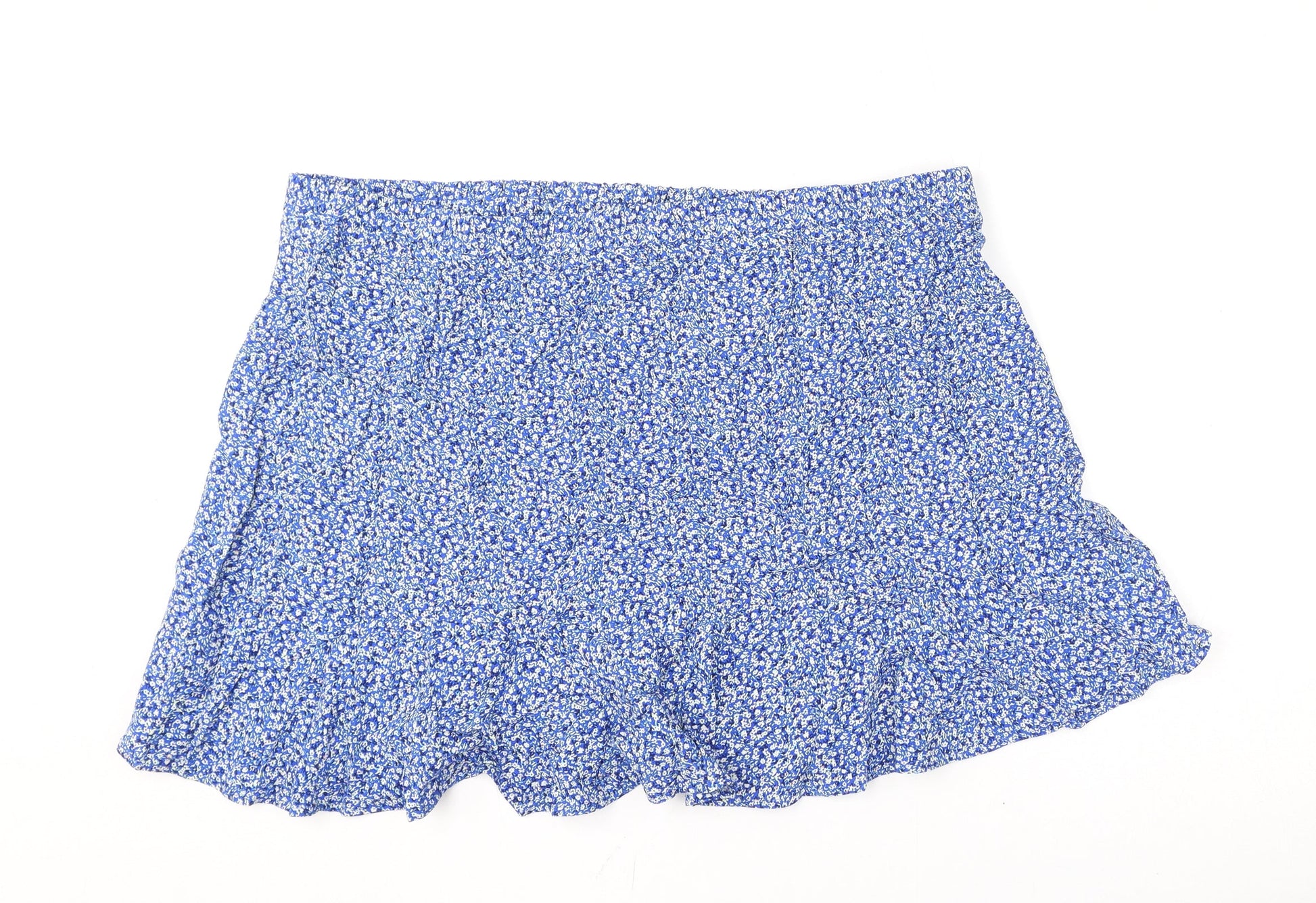 Marks and Spencer Womens Blue Floral Viscose Flare Skirt Size 24