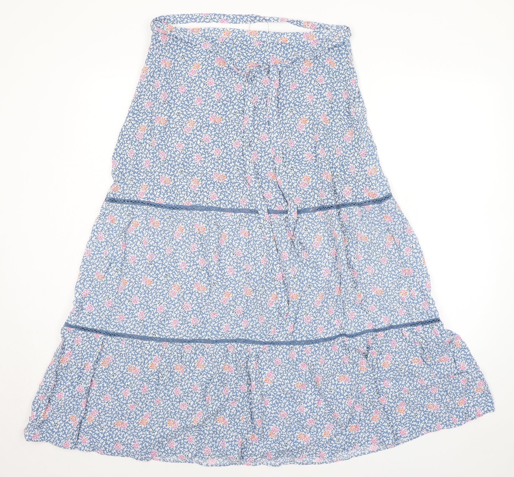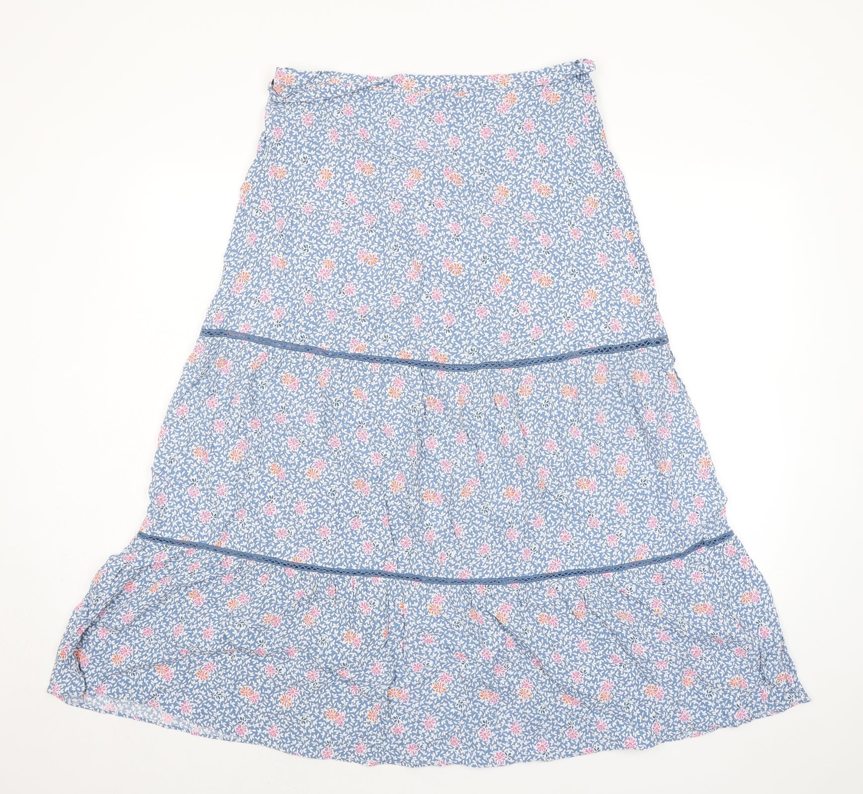 Marks and Spencer Womens Blue Floral Viscose Peasant Skirt Size 14 Zip - Belted