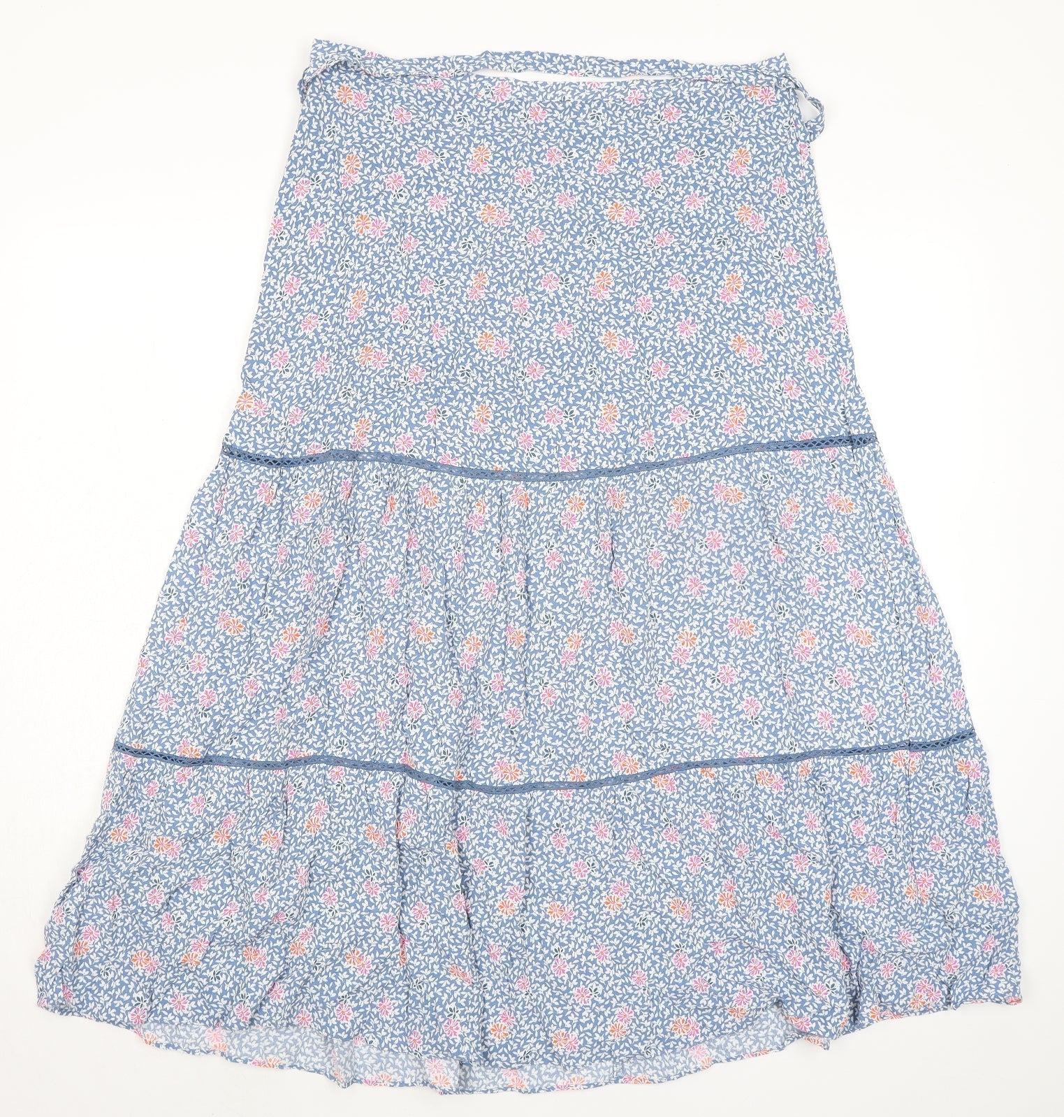 Marks and Spencer Womens Blue Floral Viscose Peasant Skirt Size 16 Zip - Belted