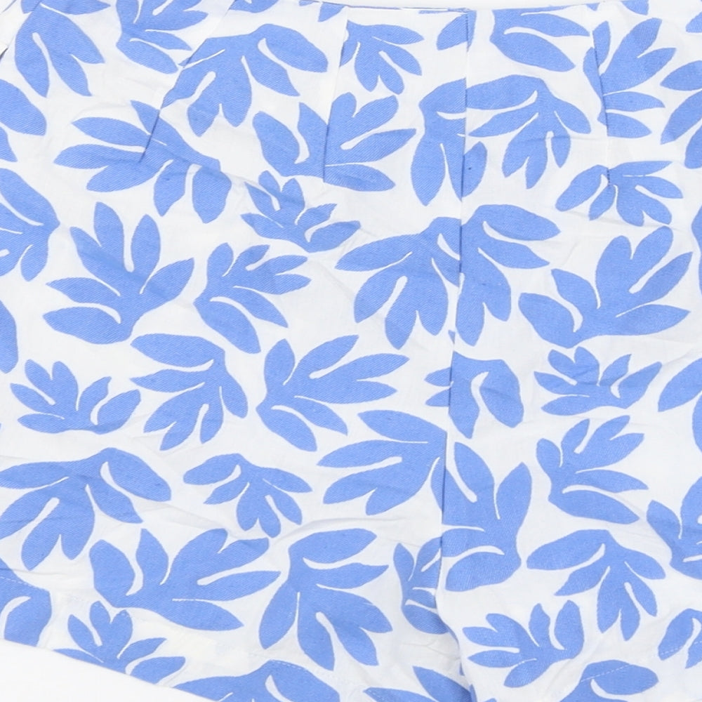 Marks and Spencer Womens Blue Geometric Cotton Hot Pants Shorts Size 8 L3 in Regular Button