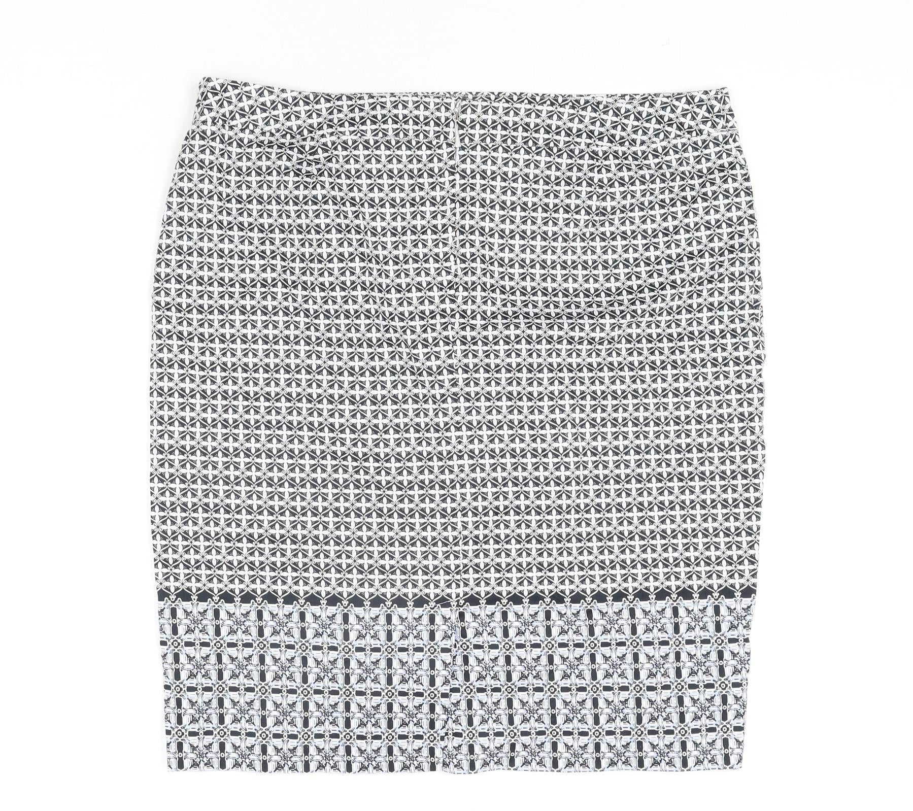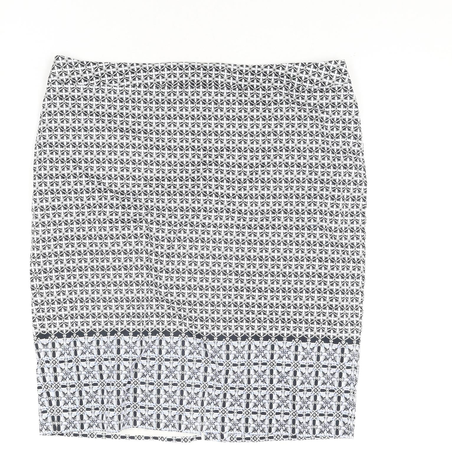 Marks and Spencer Womens Blue Geometric Cotton Straight & Pencil Skirt Size 16 Zip