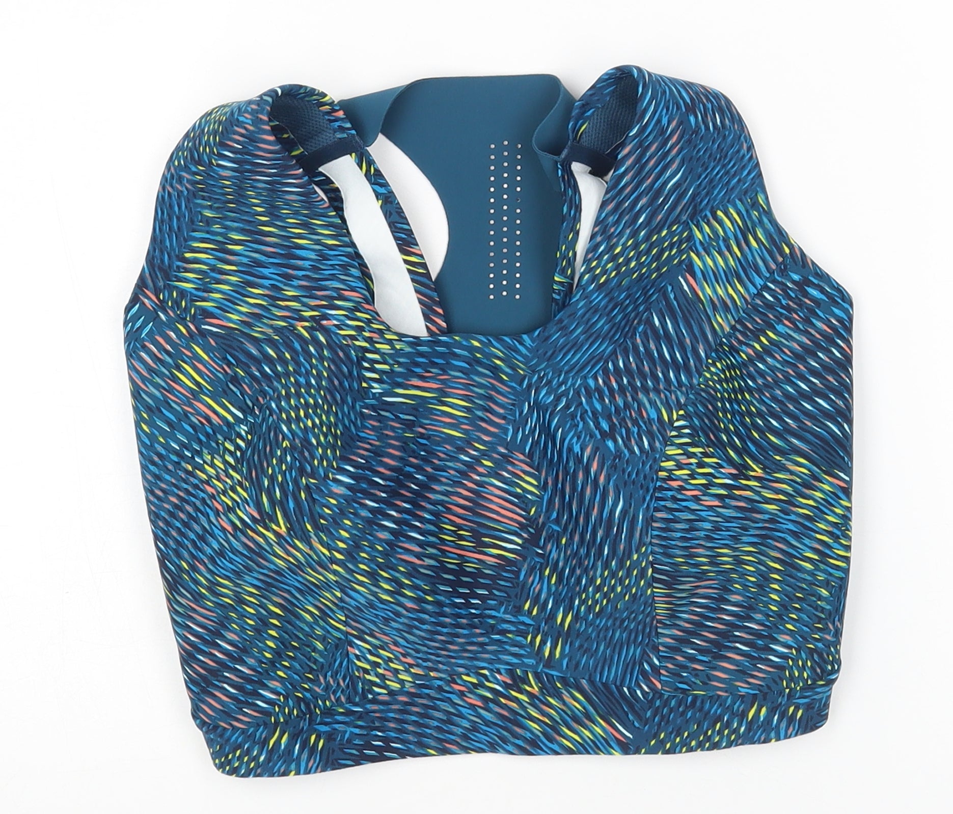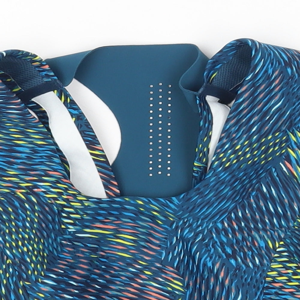 Marks and Spencer Womens Blue Geometric Polyamide Cropped Casual Size 6 Scoop Neck Hook & Eye