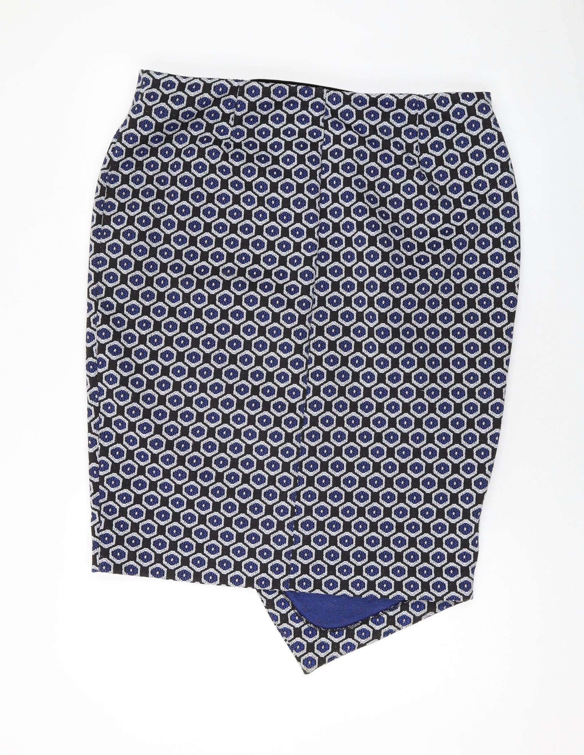 Marks and Spencer Womens Blue Geometric Polyester Straight & Pencil Skirt Size 36 in