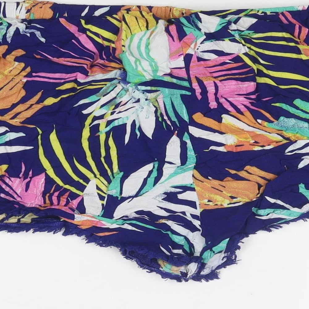 Marks and Spencer Womens Blue Geometric Viscose Hot Pants Shorts Size 22 Regular Pull On