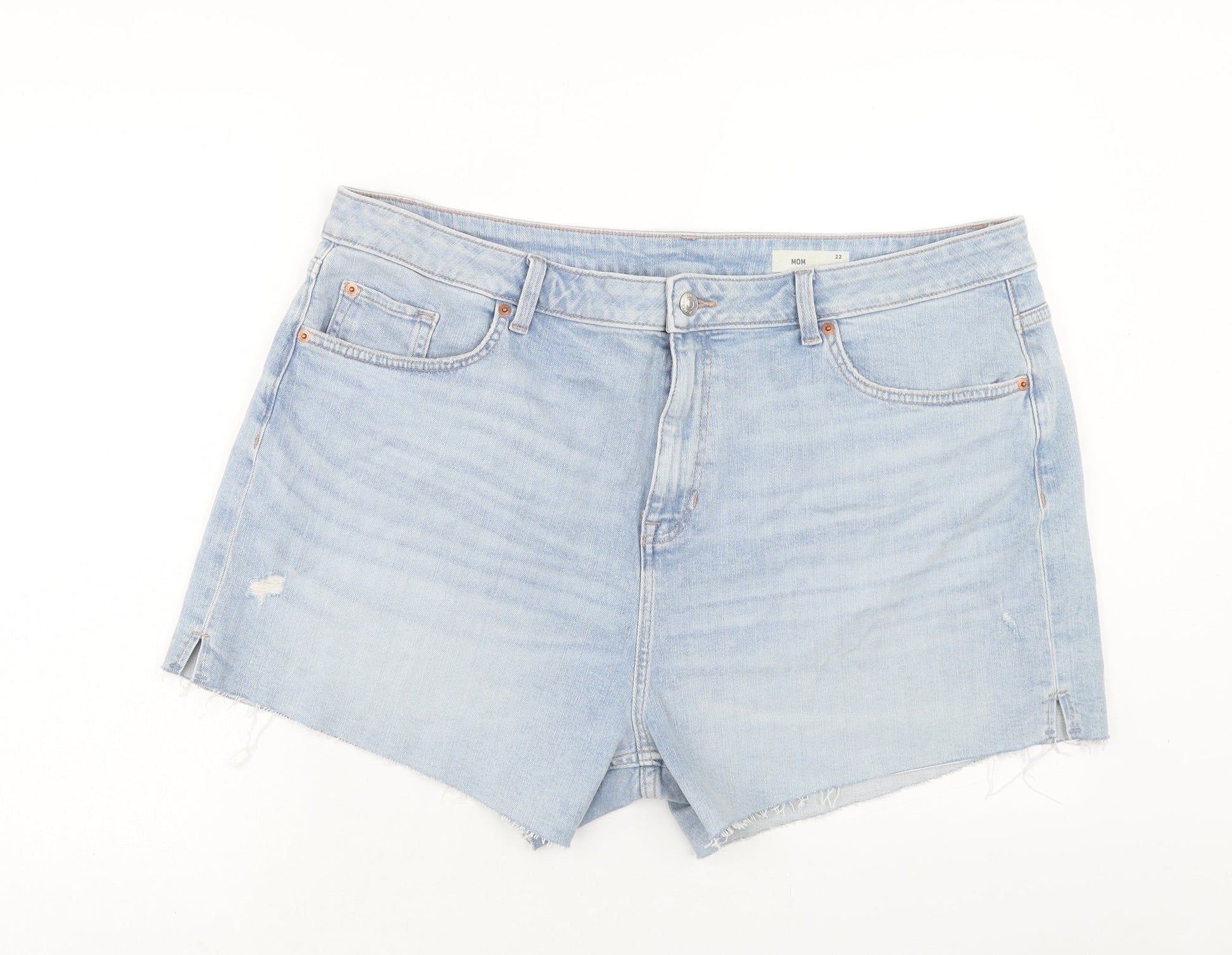 Marks and Spencer Womens Blue Herringbone Cotton Cut-Off Shorts Size 22 Regular Zip