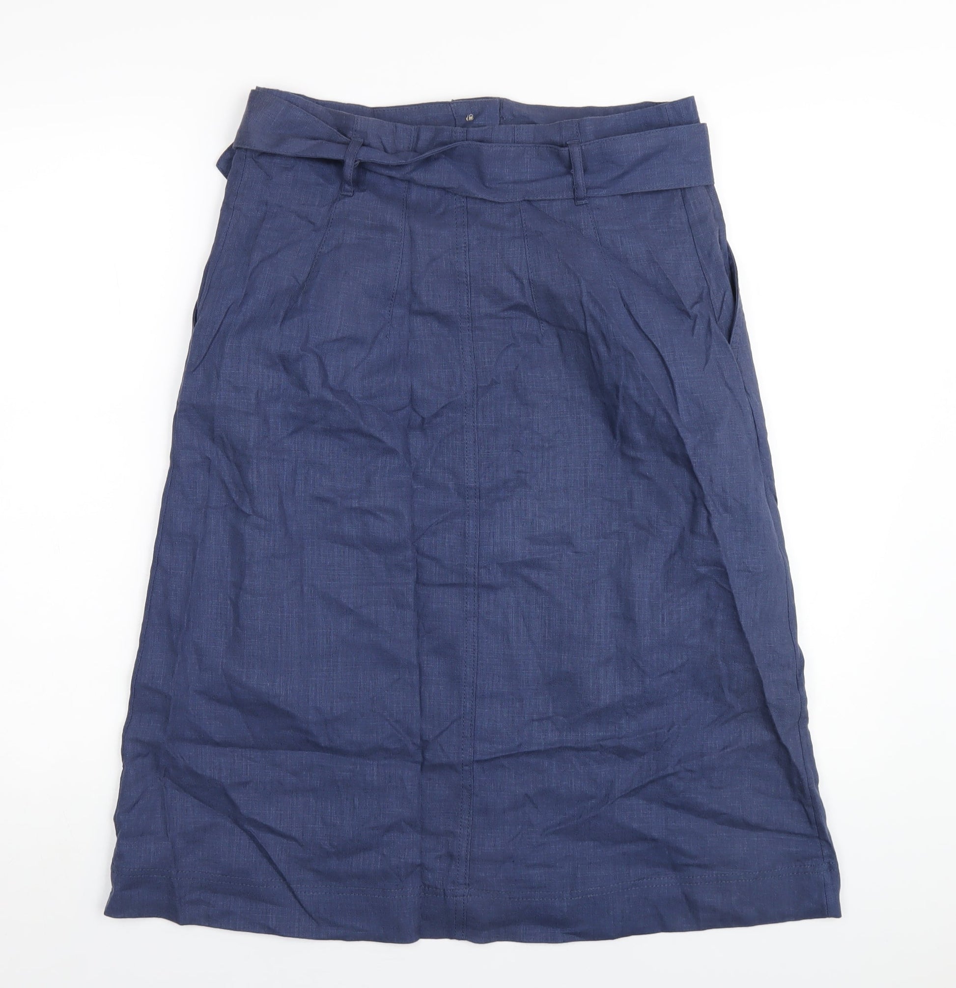 Marks and Spencer Womens Blue Linen A-Line Skirt Size 12 Button