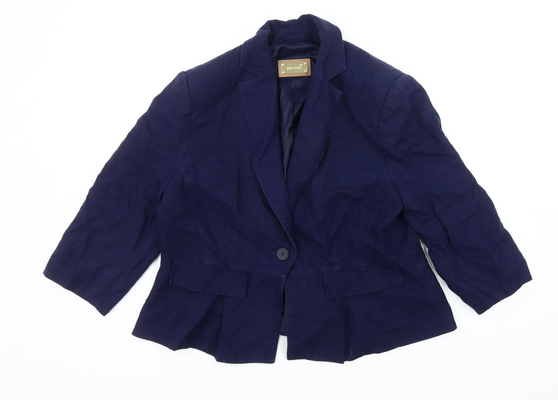 Marks and Spencer Women's Blue Linen Blazer - Size 14
