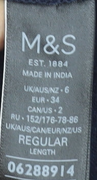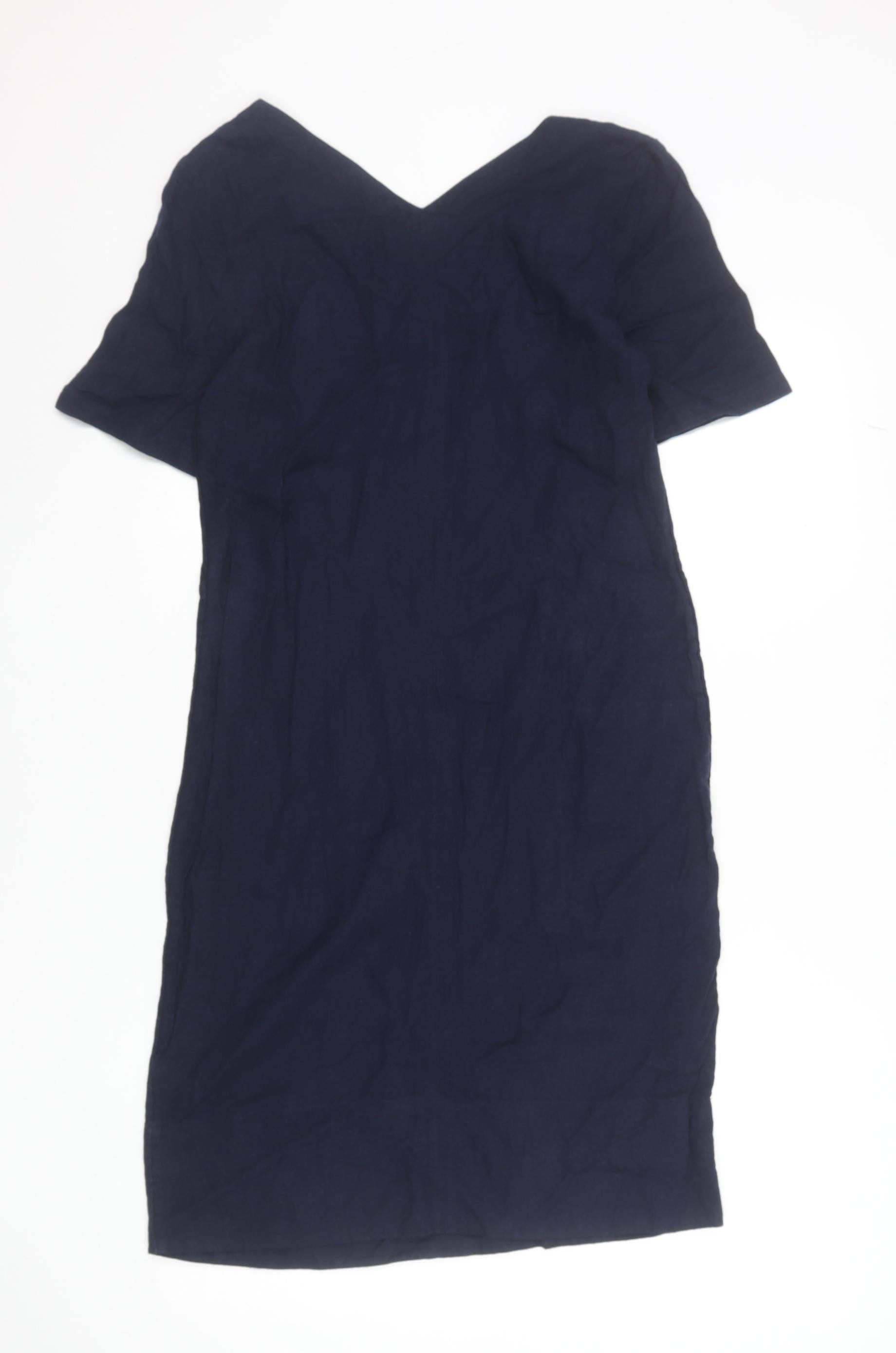 Marks and Spencer Women's Blue Linen Blend V-Neck Shift Dress Size 6