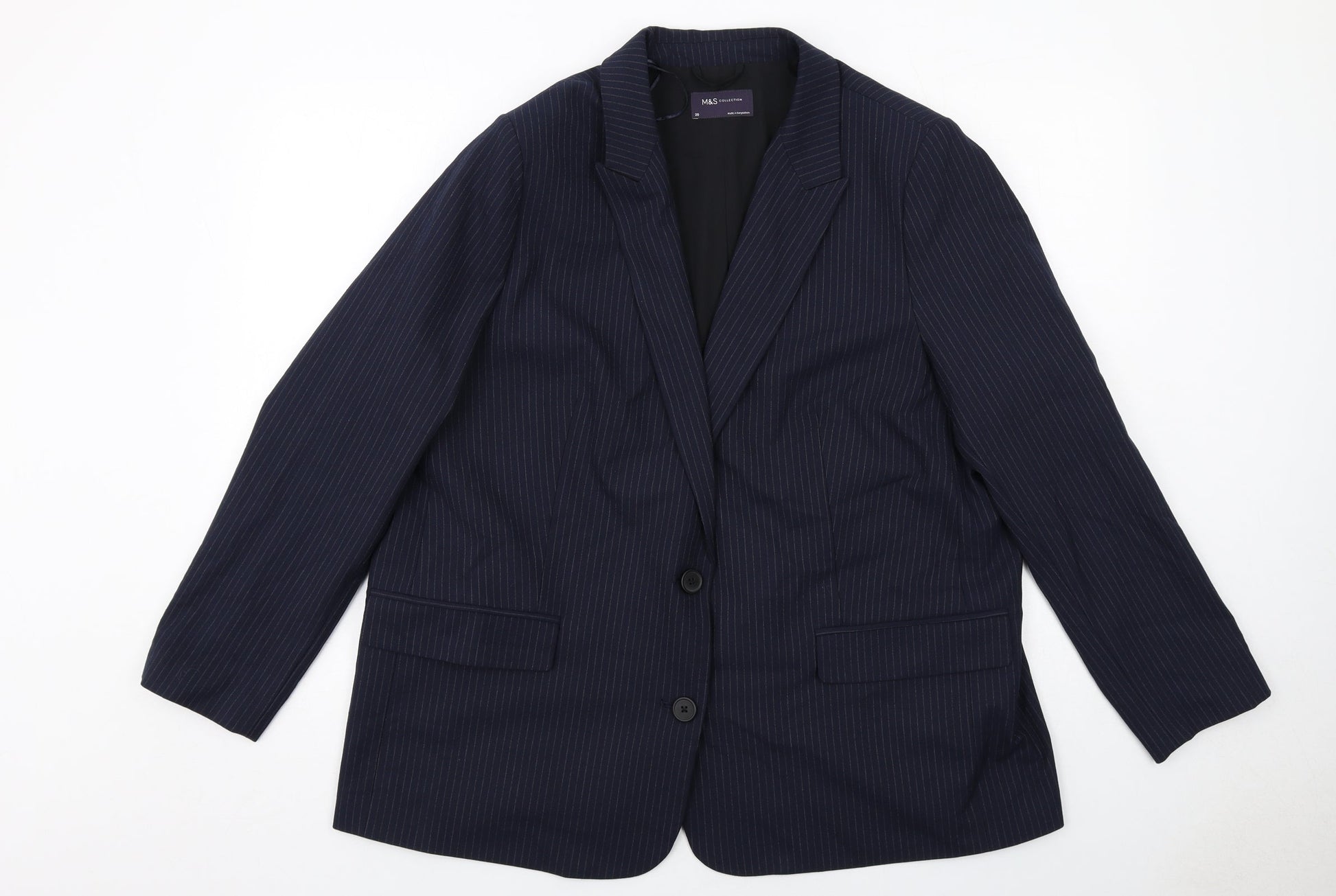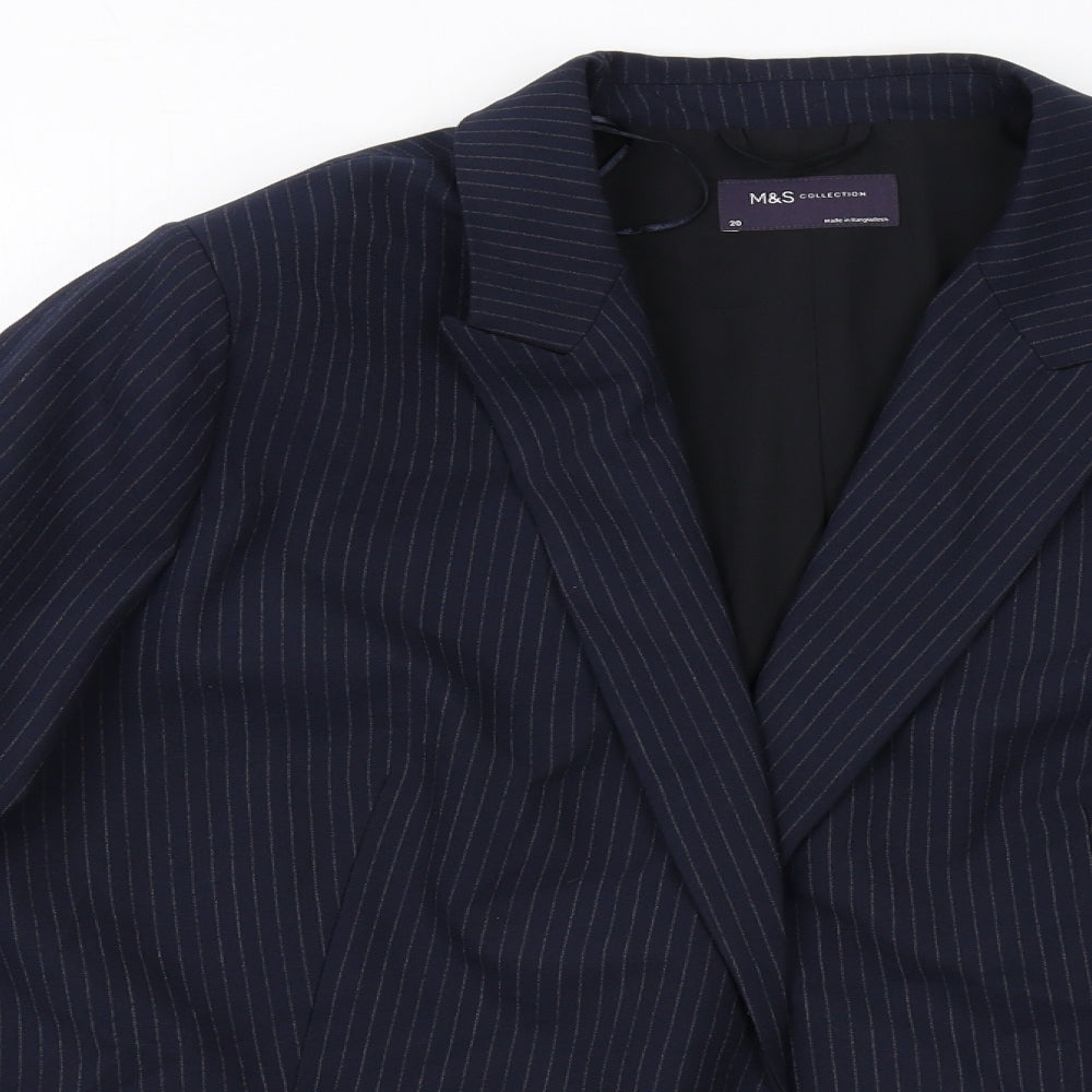 Marks and Spencer Womens Blue Pinstripe Polyester Jacket Suit Jacket Size 20