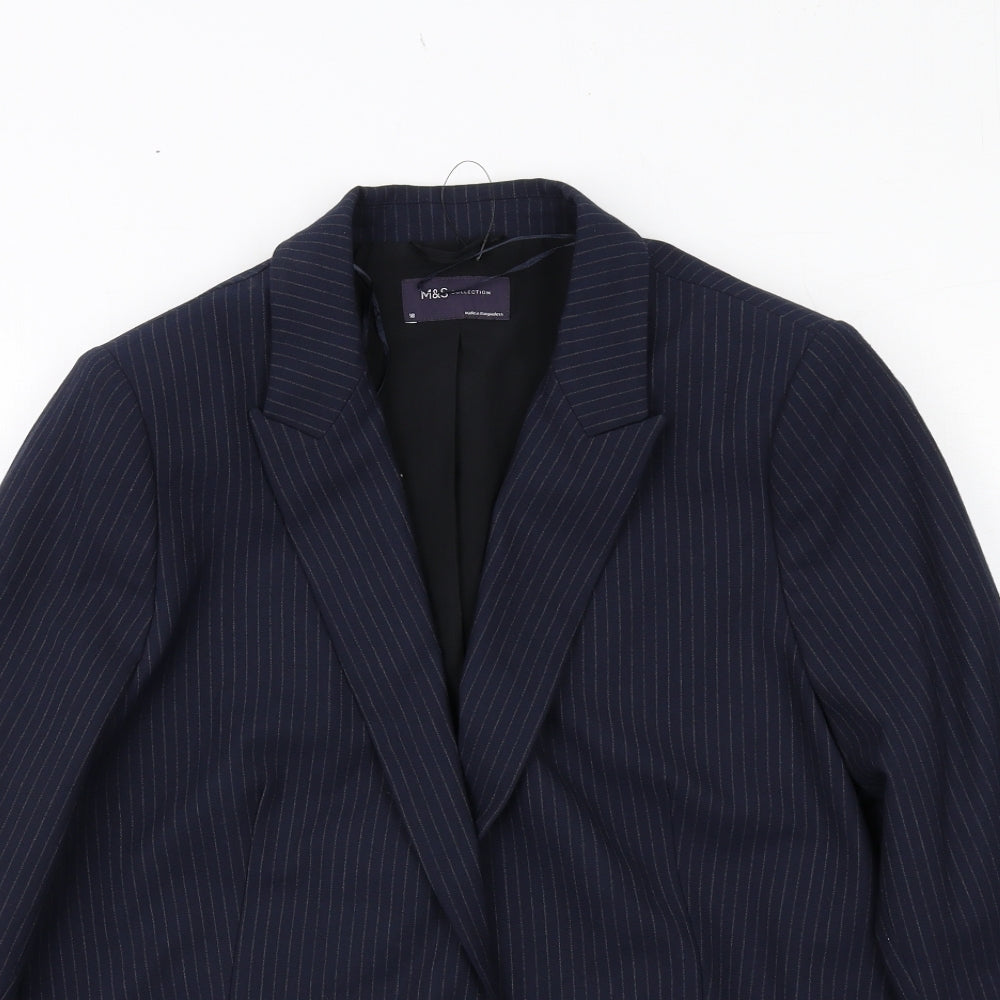 Marks and Spencer Womens Blue Pinstripe Polyester Jacket Suit Jacket Size 18