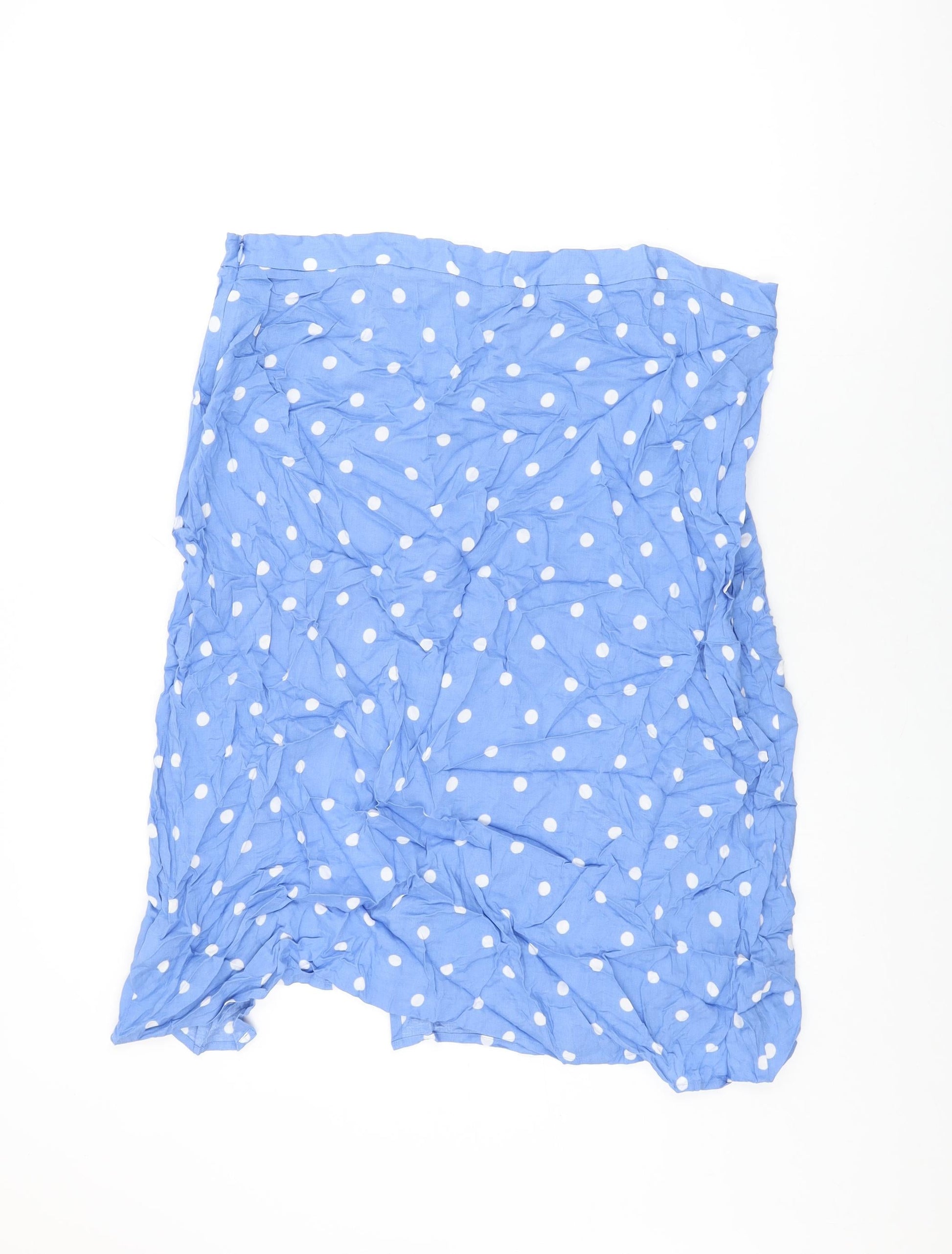 Marks and Spencer Womens Blue Polka Dot Viscose Flare Skirt Size 22 Zip
