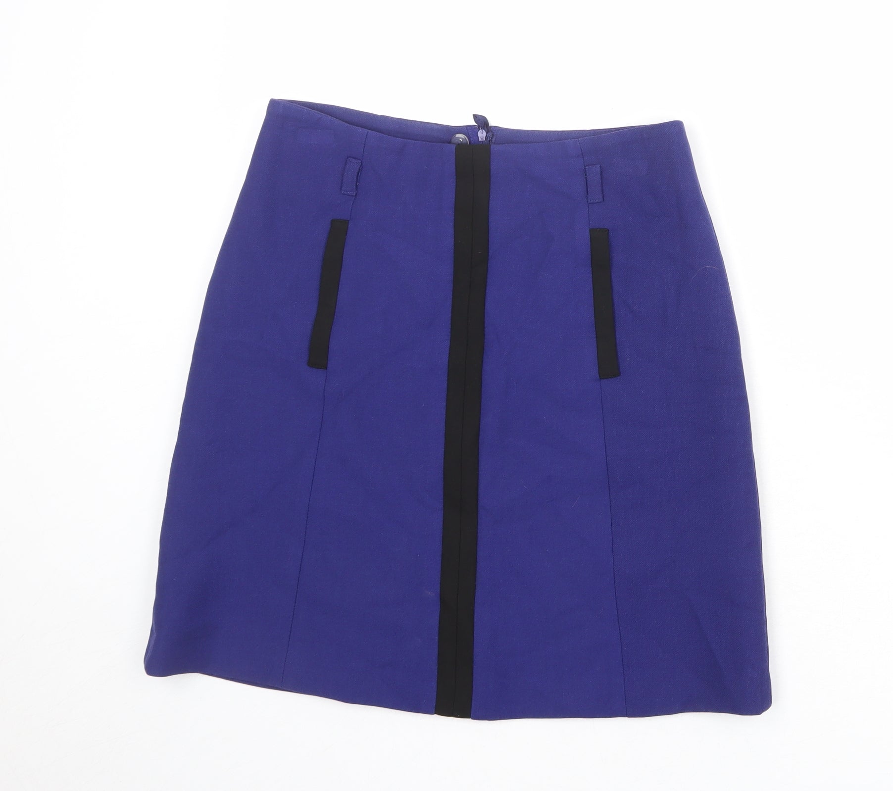Marks and Spencer Womens Blue Polyester A-Line Skirt Size 8 Zip