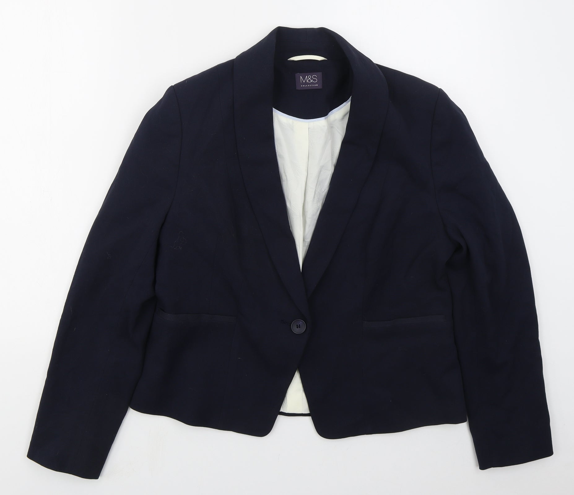 Marks and Spencer Womens Blue Polyester Jacket Suit Jacket Size 14