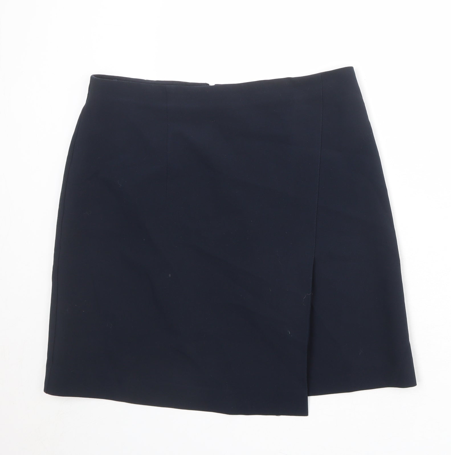 Marks and Spencer Womens Blue Polyester Mini Skirt Size 36 in Zip - Wrap Style
