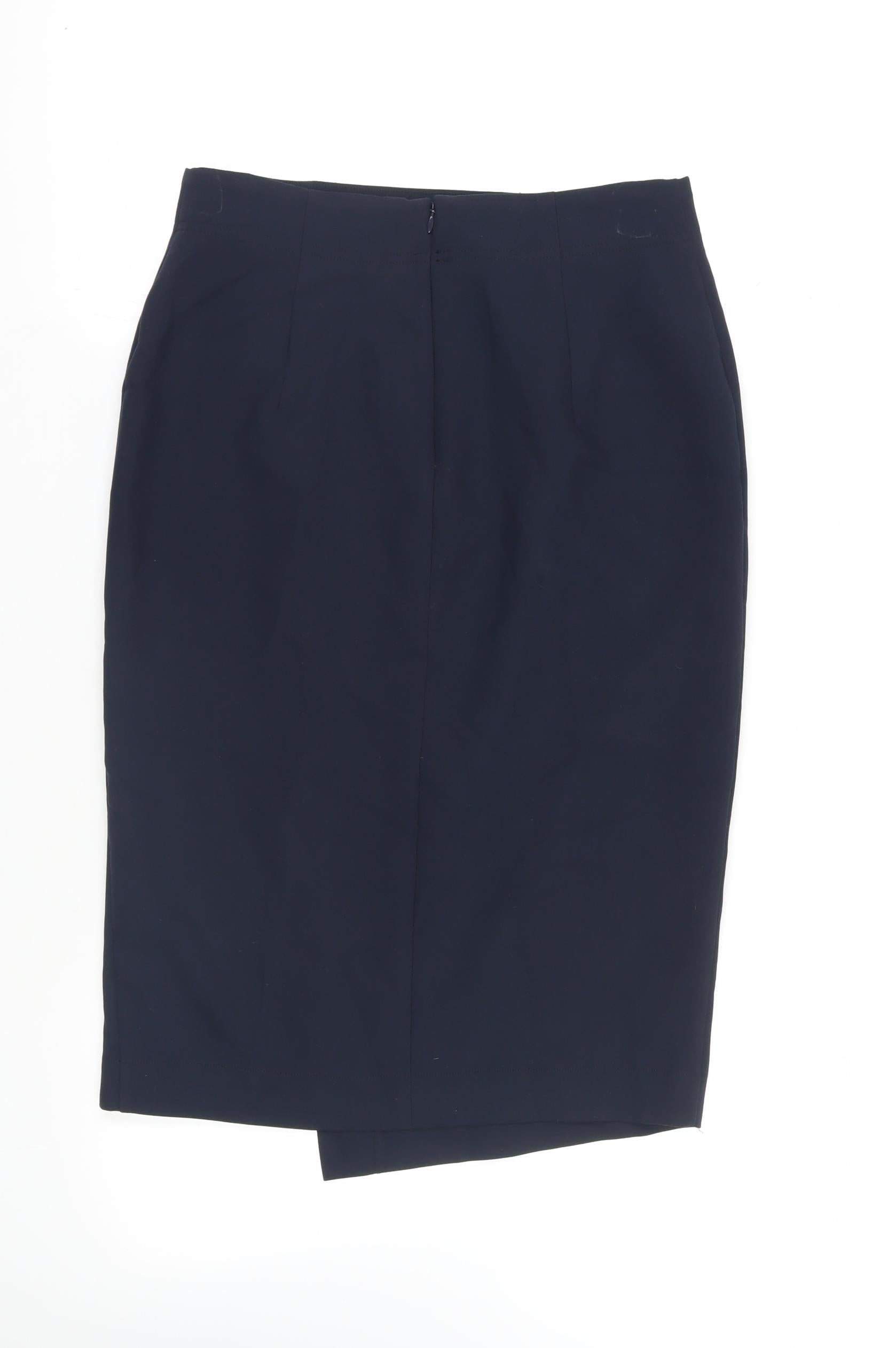 Marks and Spencer Womens Blue Polyester Straight & Pencil Skirt Size 12 Zip - Button Detail