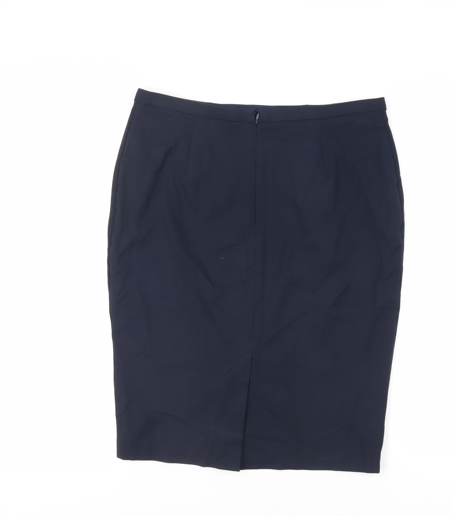 Marks and Spencer Womens Blue Polyester Straight & Pencil Skirt Size 14 Zip