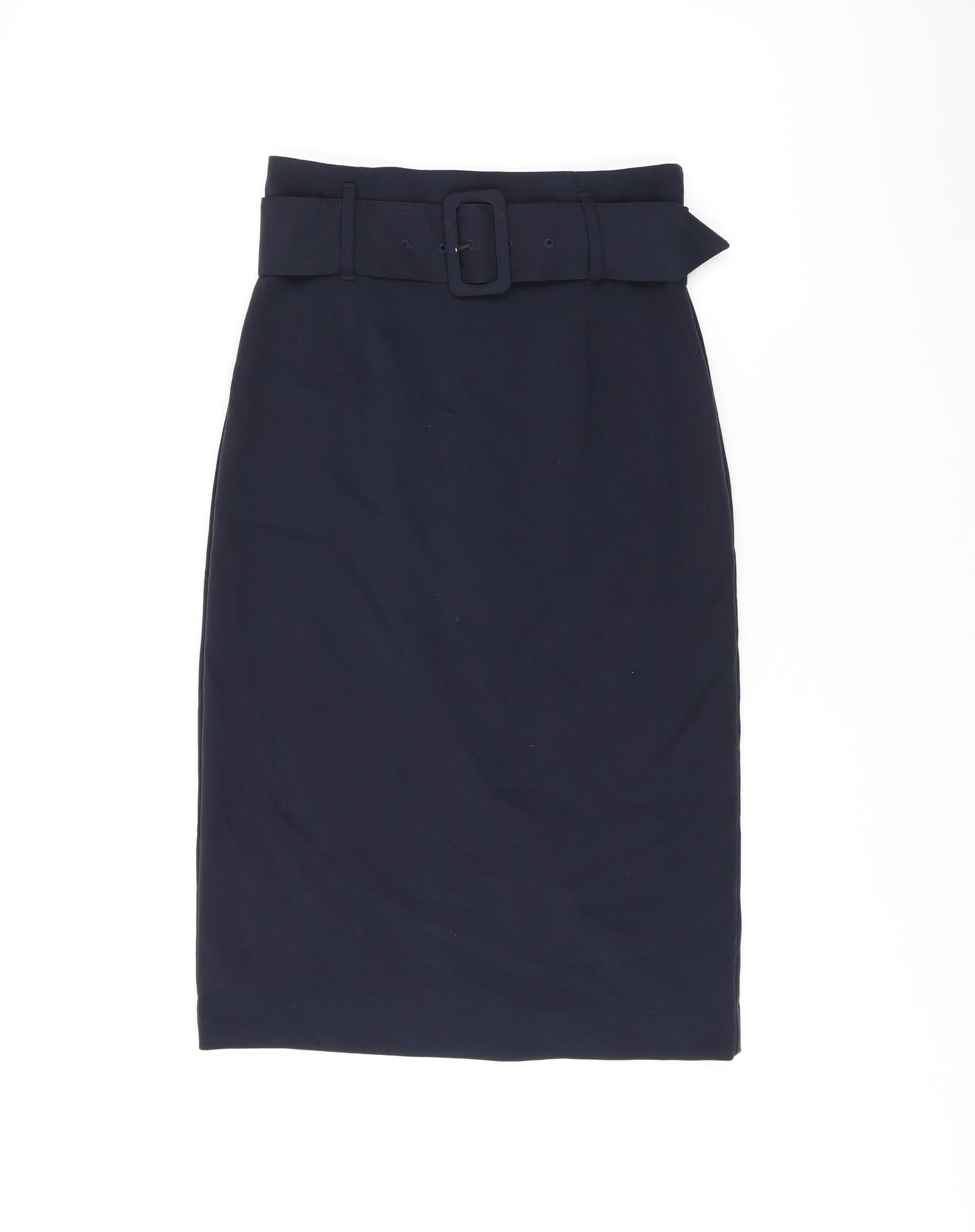 Marks and Spencer Womens Blue Polyester Straight & Pencil Skirt Size 6 Zip - Belted, Slit