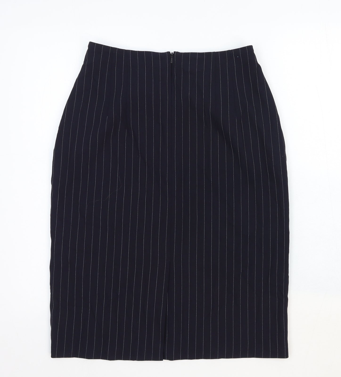 Marks and Spencer Womens Blue Striped Cotton Straight & Pencil Skirt Size 12 Zip