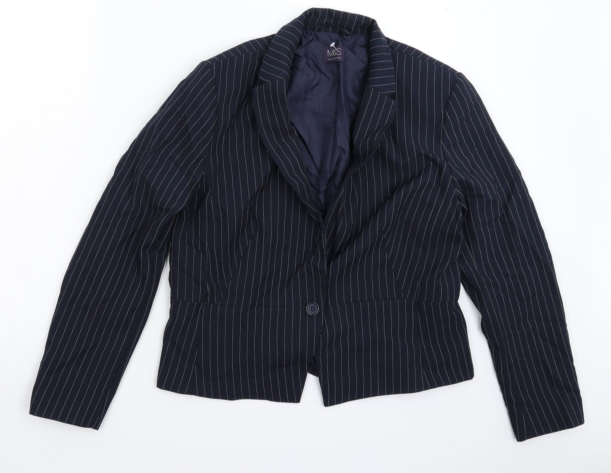 Marks and Spencer Womens Blue Striped Jacket Suit Jacket Size 14