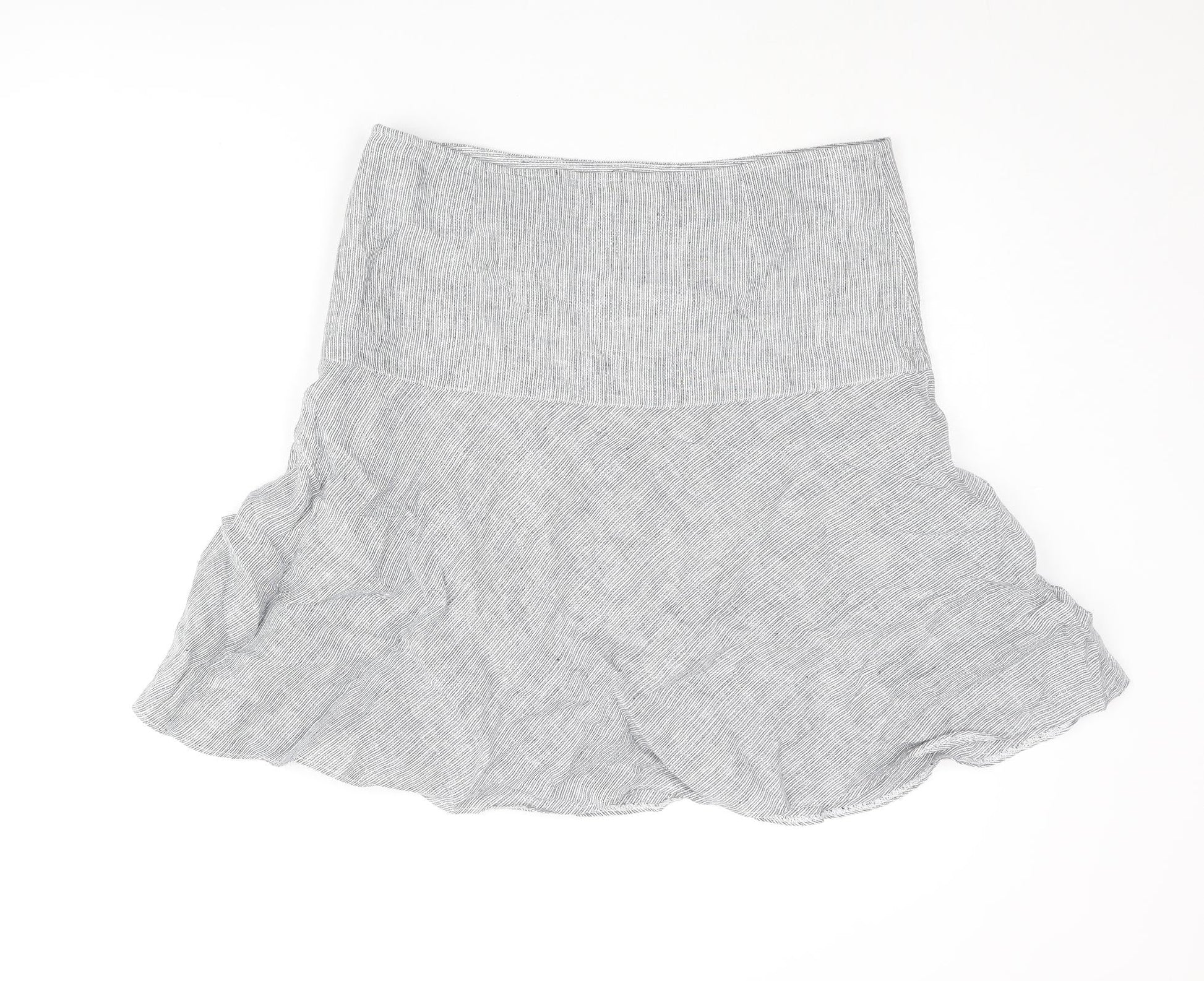 Marks and Spencer Womens Blue Striped Linen A-Line Skirt Size 12 Zip
