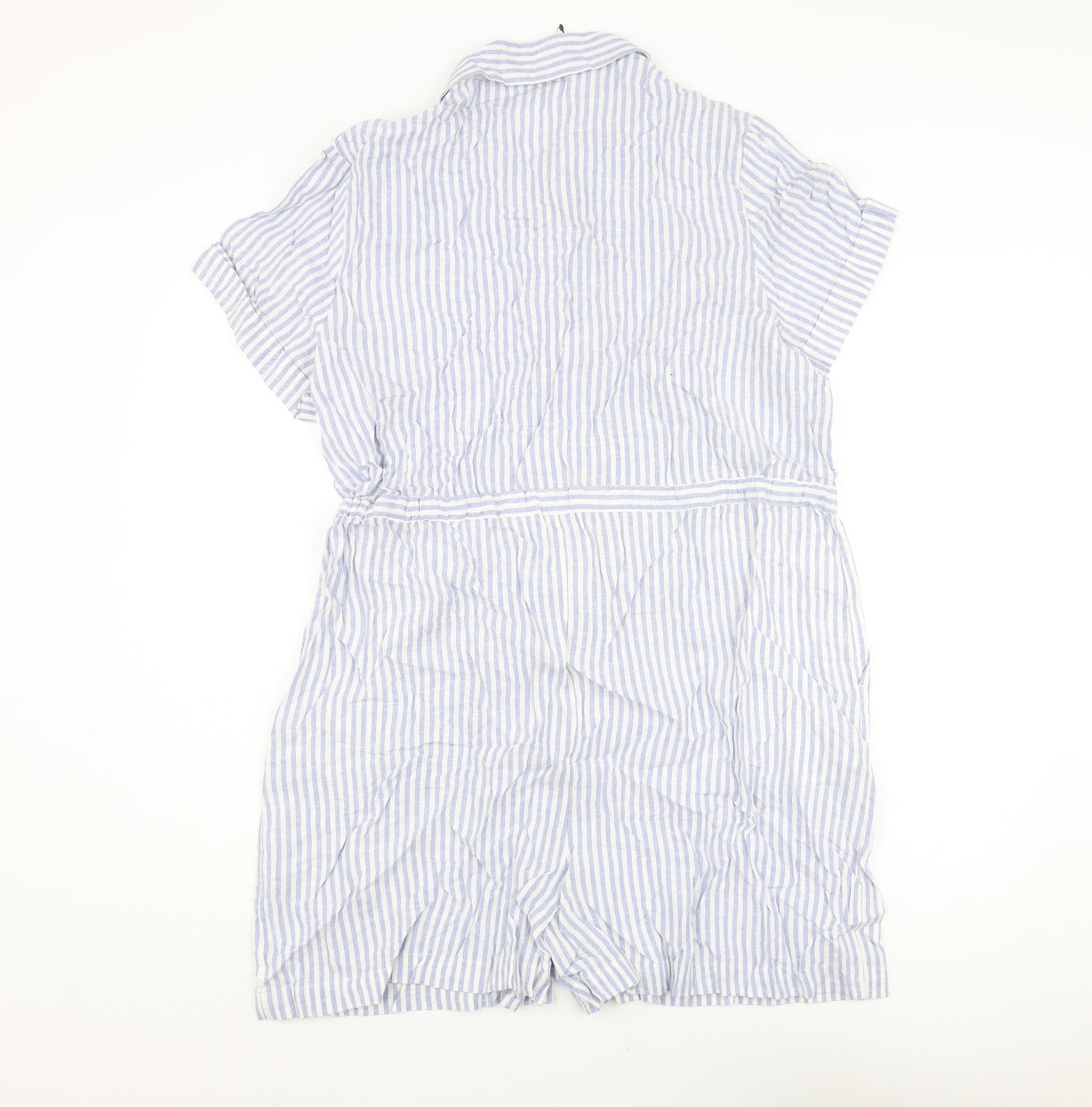 Marks and Spencer Womens Blue Striped Linen Romper One-Piece Size 16 L3 in Button - Drawstring Waist