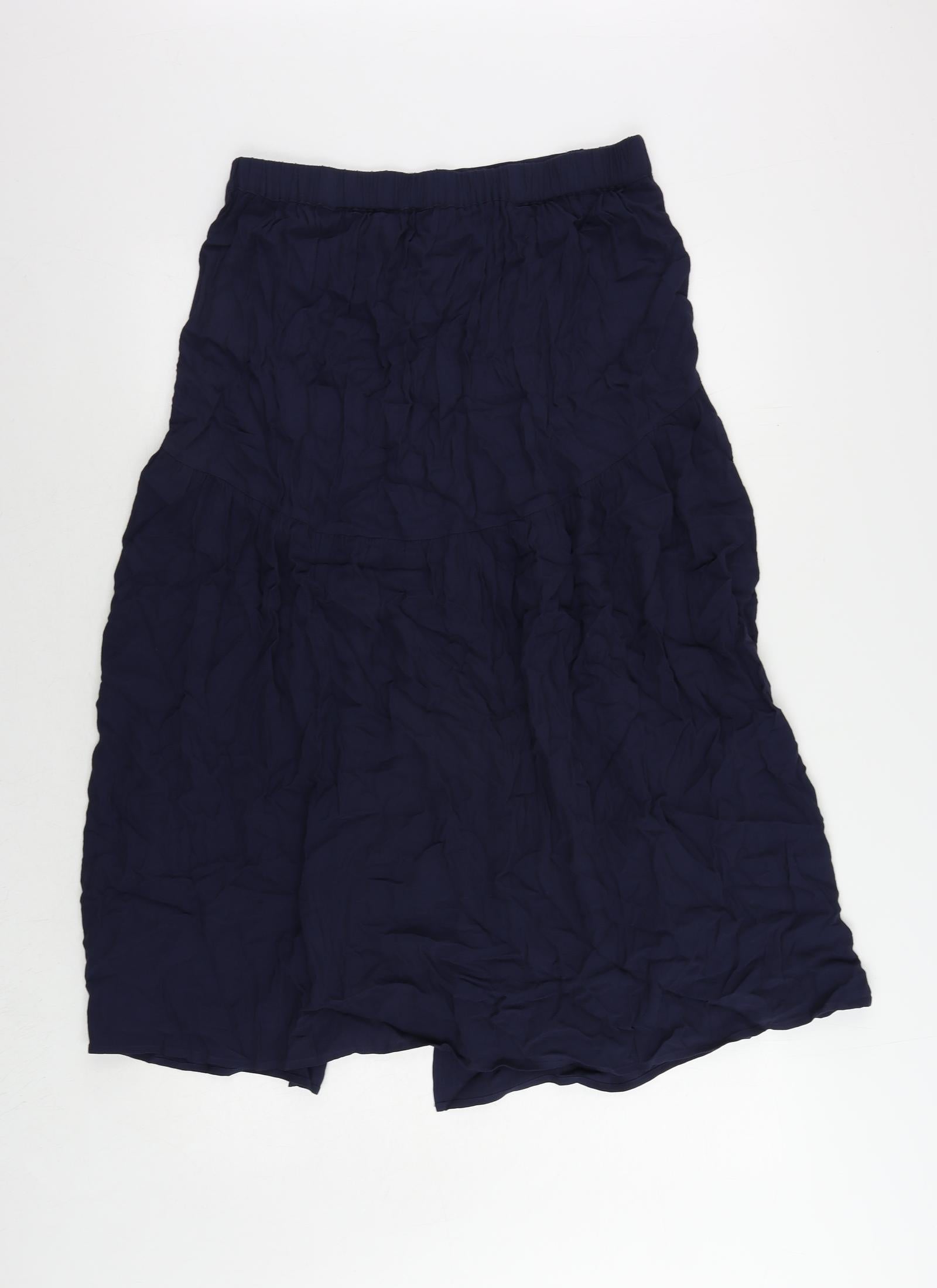 Marks and Spencer Womens Blue Viscose A-Line Skirt Size 12 - Side Slit