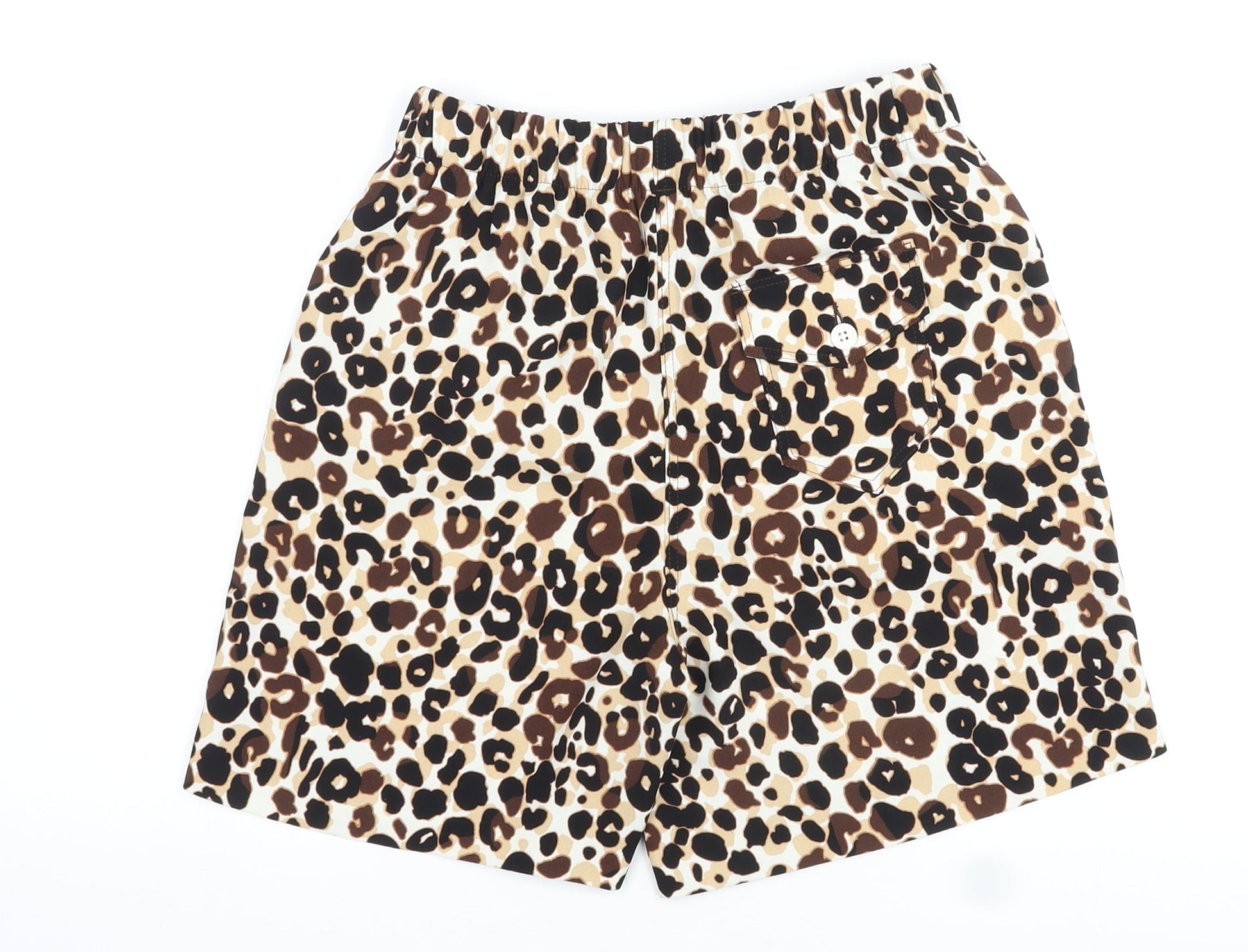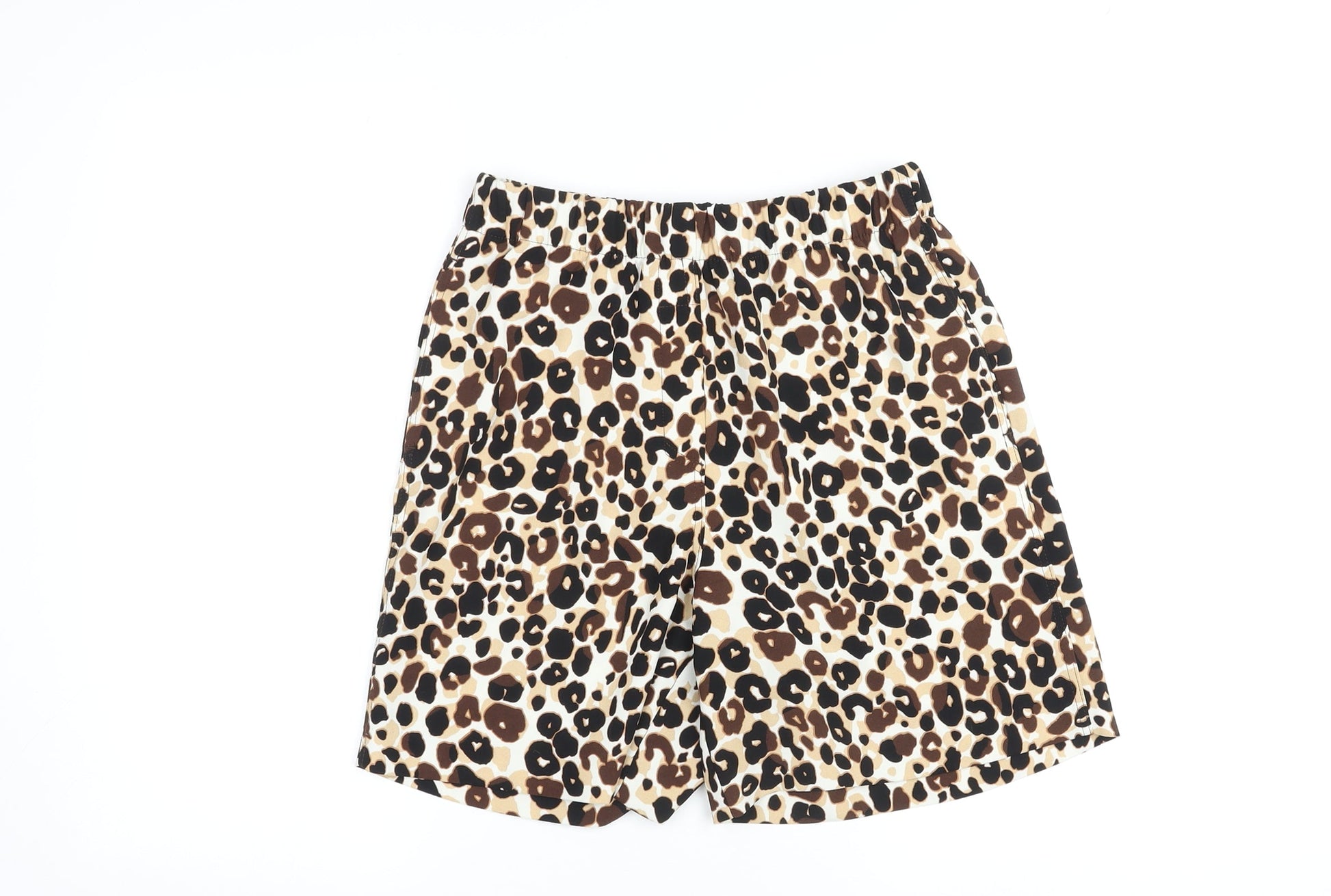 Marks and Spencer Womens Brown Animal Print Polyester Basic Shorts Size 8 L7 in Regular Pull On - Leopard Print
