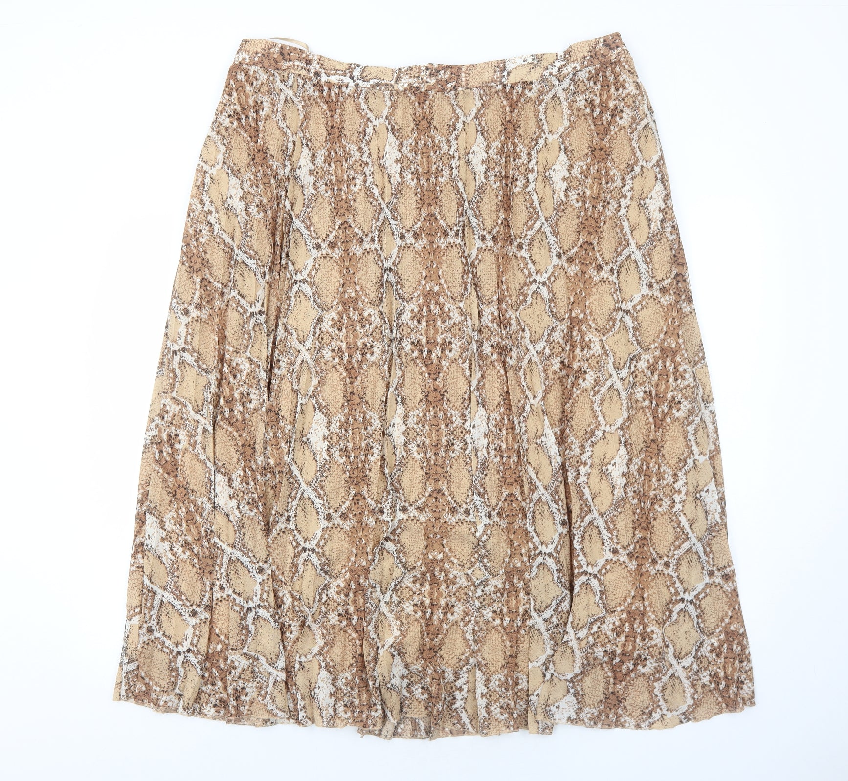 Marks and Spencer Womens Brown Animal Print Polyester Pleated Skirt Size 22 - Snakeskin Pattern