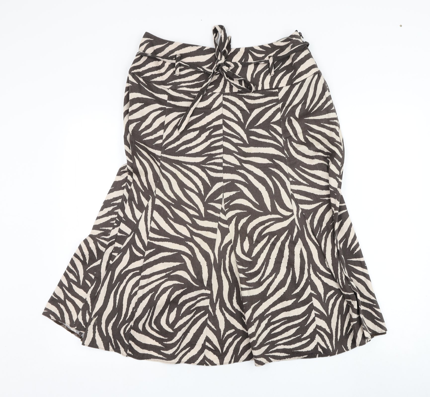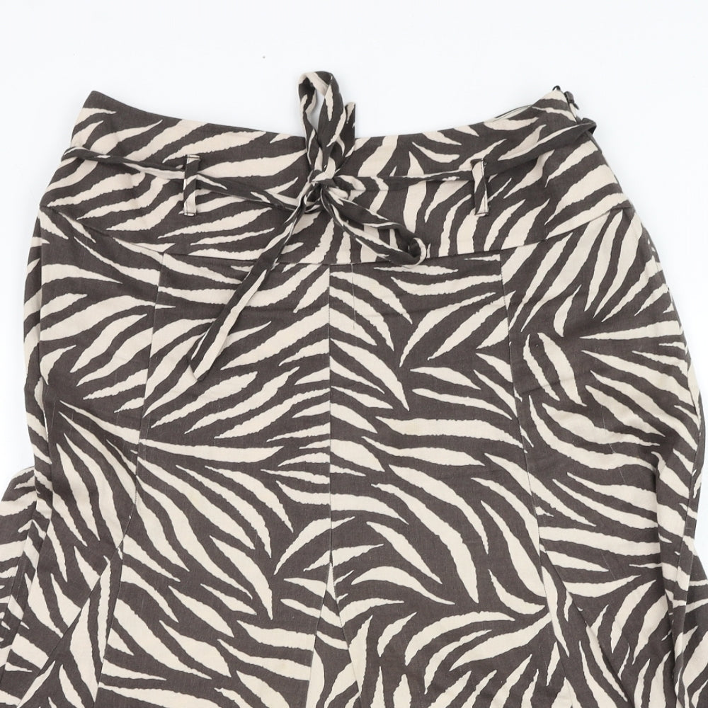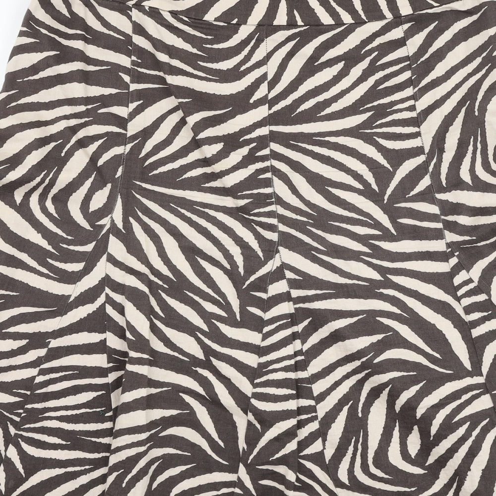 Marks and Spencer Womens Brown Floral Cotton Flare Skirt Size 12 Zip