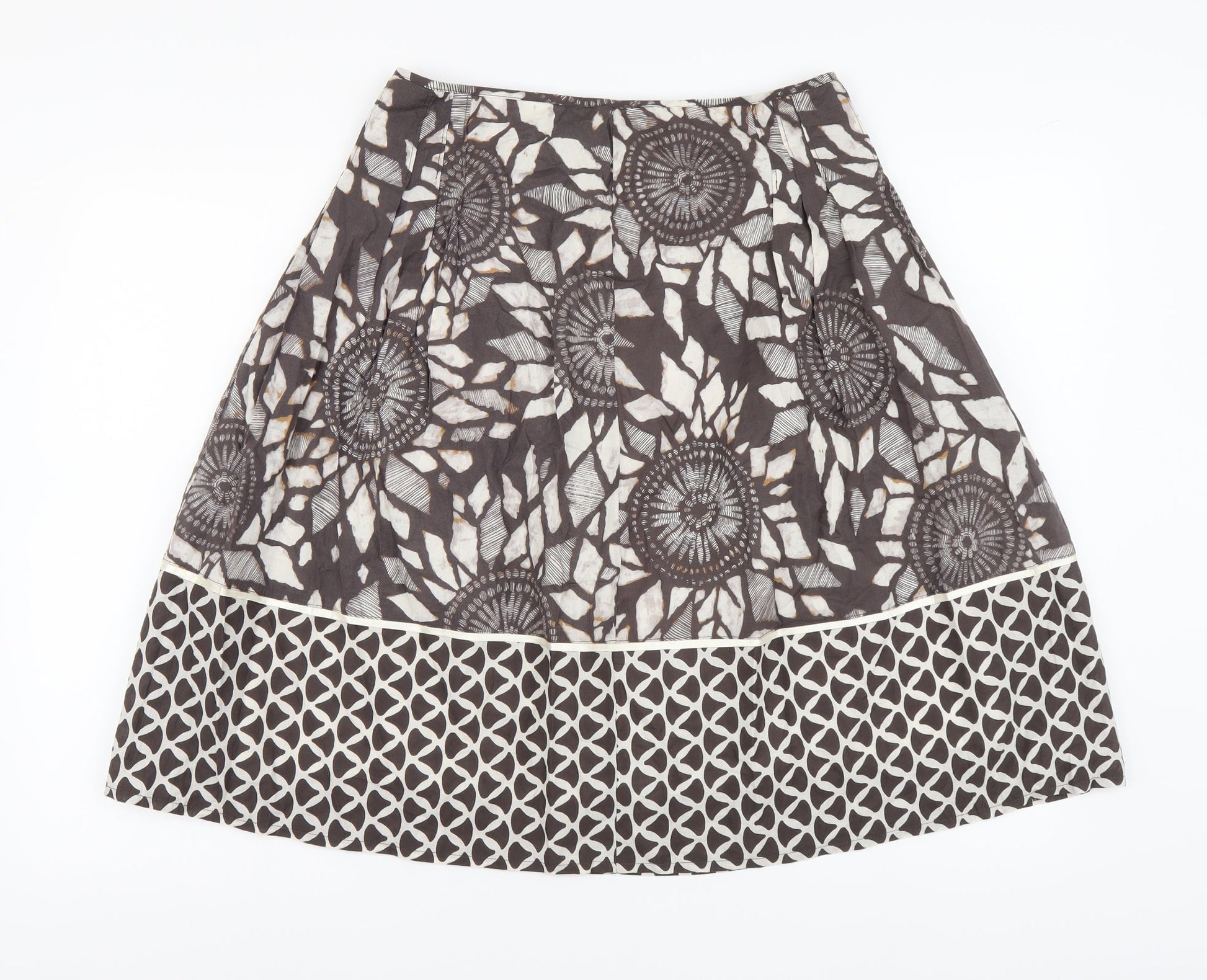 Marks and Spencer Womens Brown Geometric Cotton A-Line Skirt Size 8 Zip