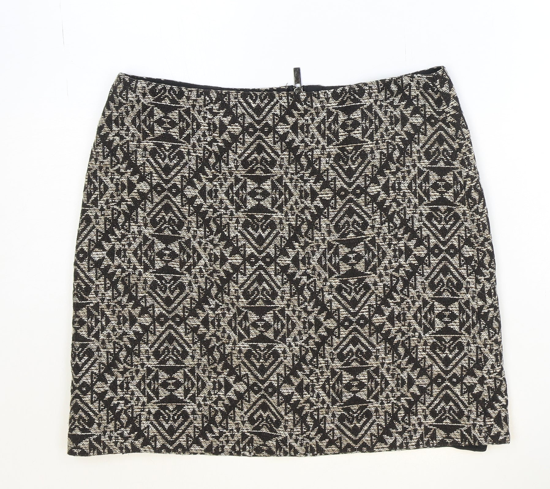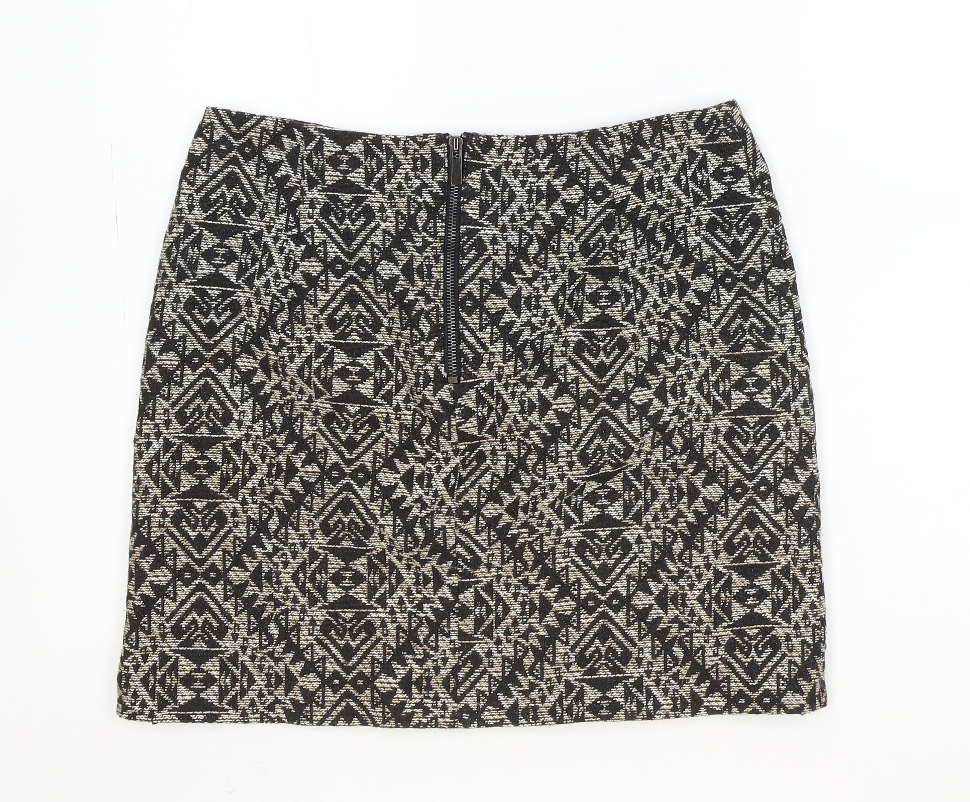 Marks and Spencer Womens Brown Geometric Cotton Straight & Pencil Skirt Size 10 Zip