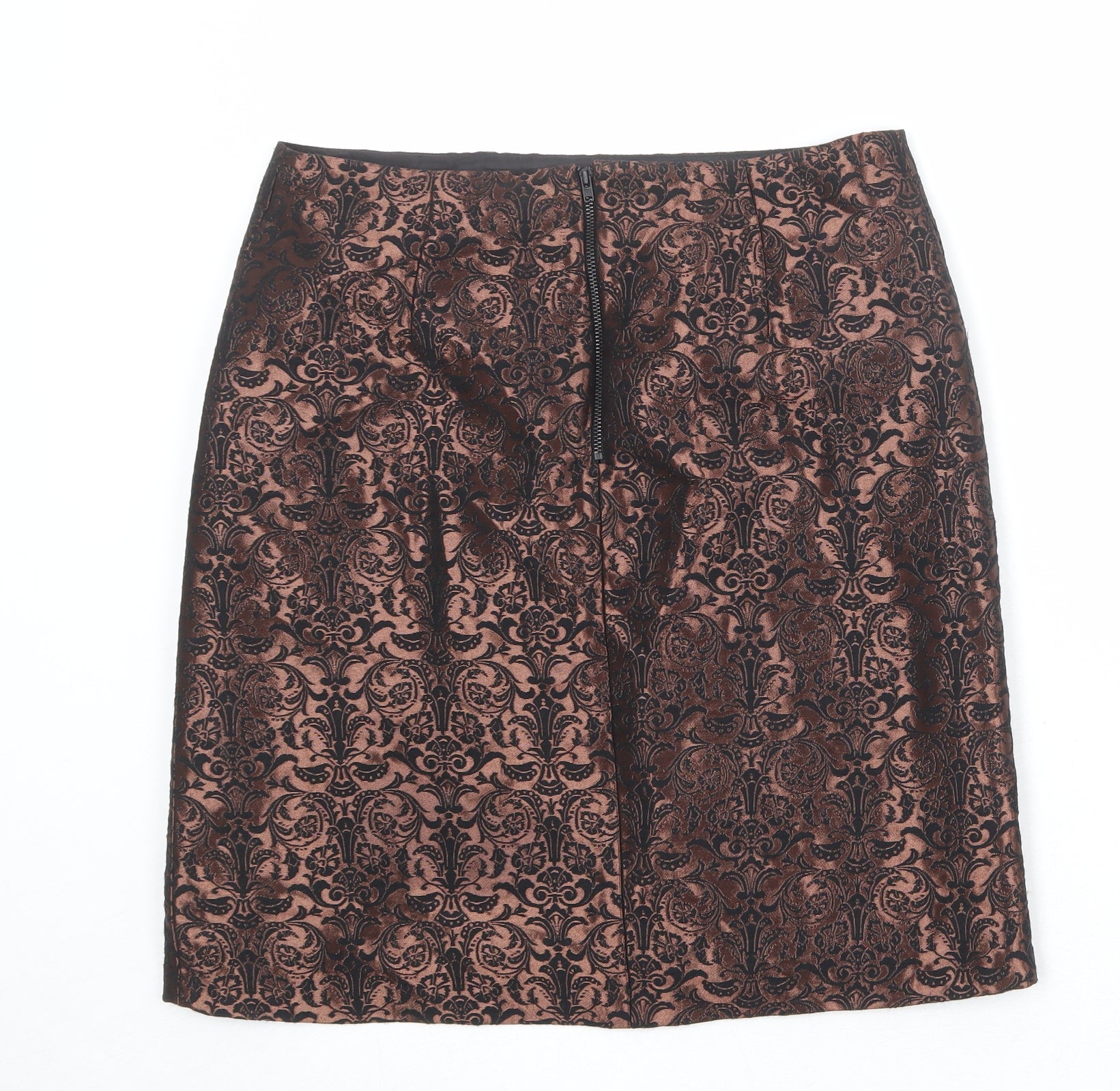 Marks and Spencer Womens Brown Geometric Polyester A-Line Skirt Size 10 Zip