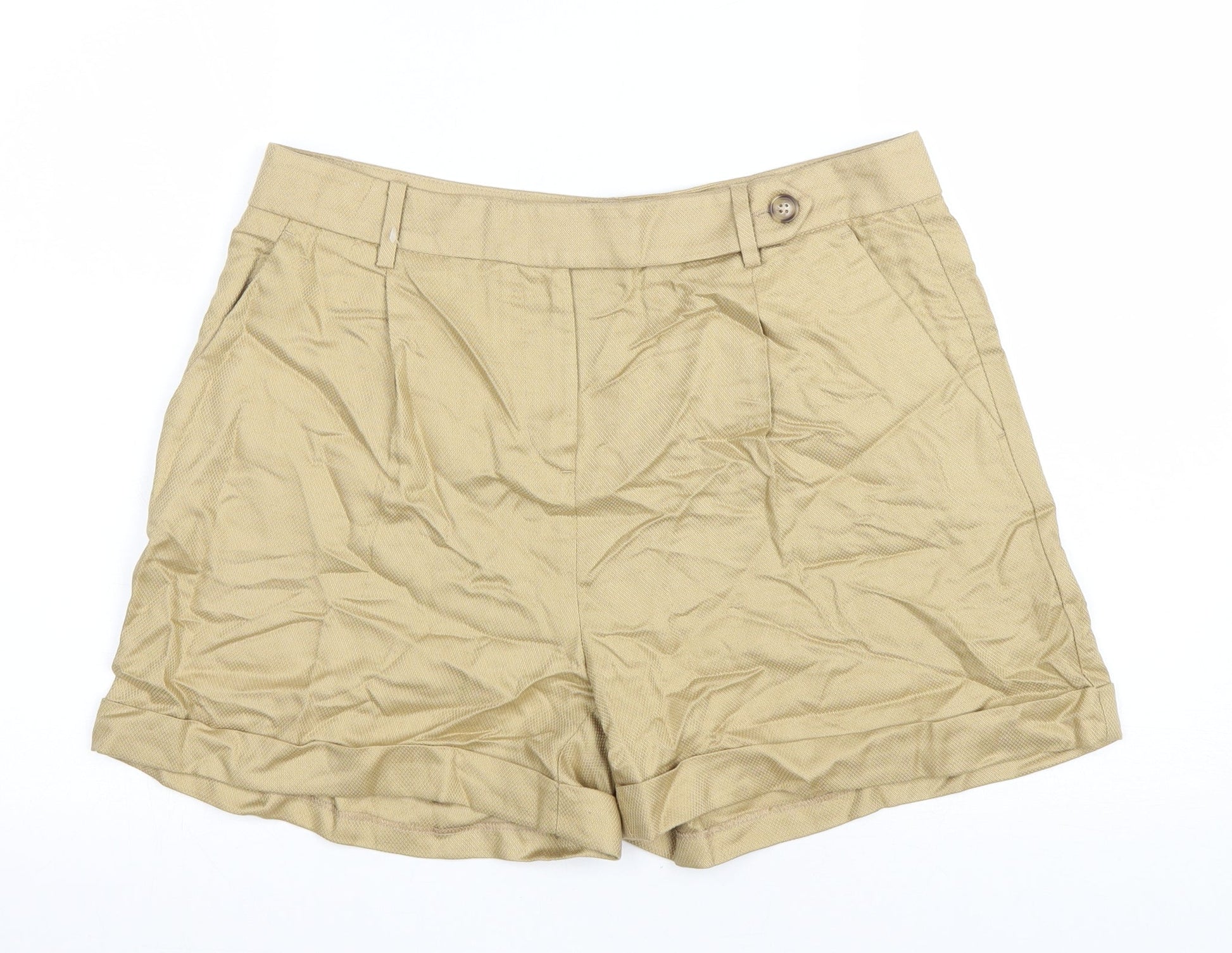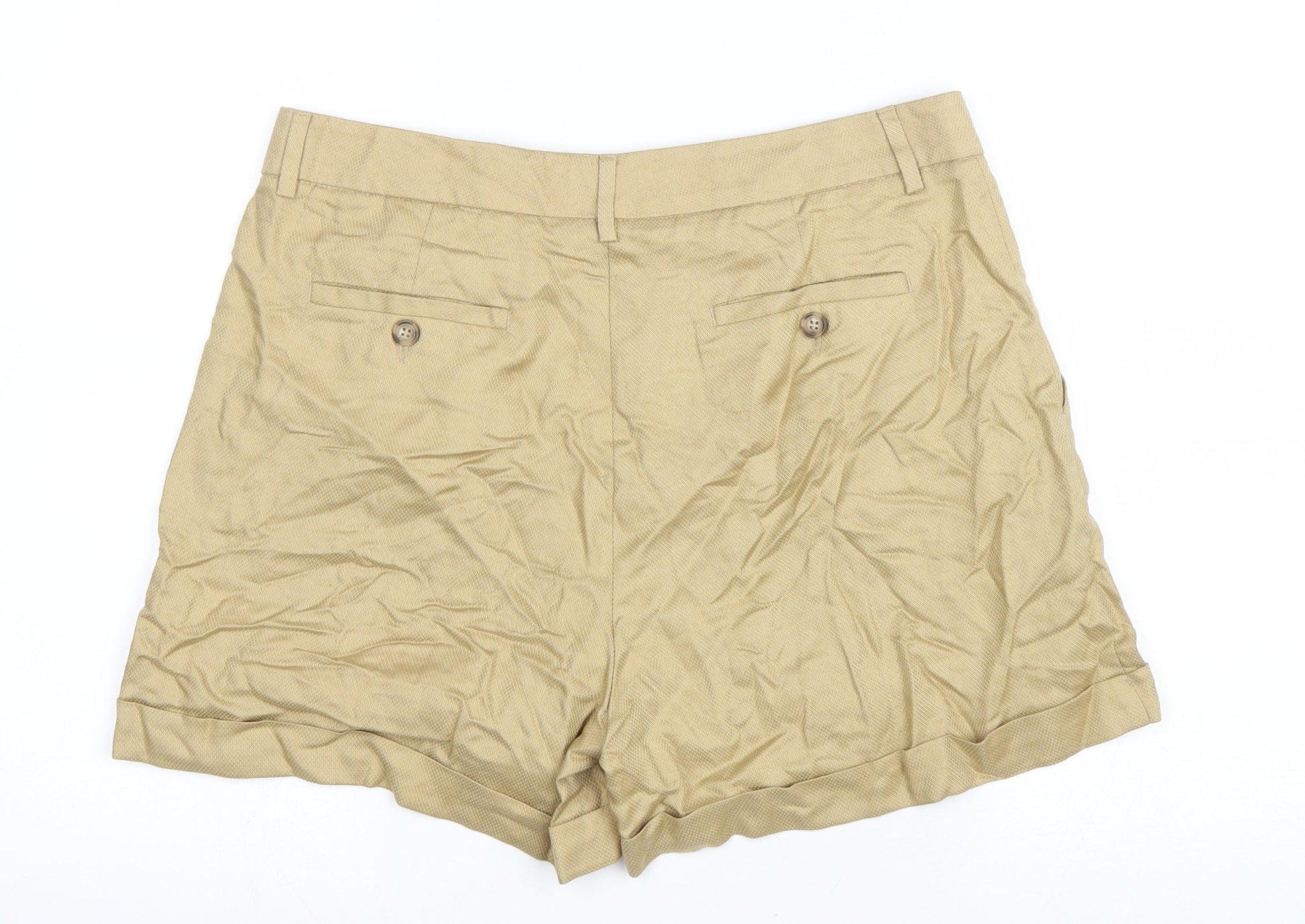 Marks and Spencer Womens Brown Lyocell Chino Shorts Size 14 L4 in Regular Zip