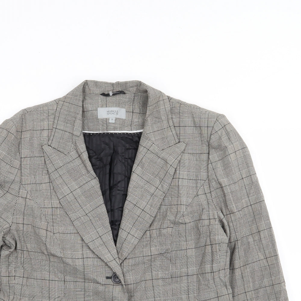 Marks and Spencer Womens Brown Plaid Polyester Jacket Suit Jacket Size 14