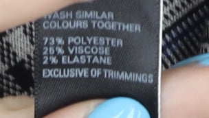 - Material Breakdown: 73% Polyester 25% Viscose 2% Elastane