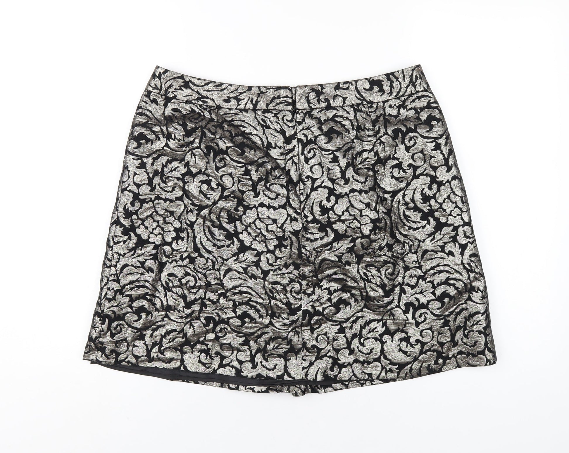 Marks and Spencer Womens Gold Geometric Cotton A-Line Skirt Size 14 Zip